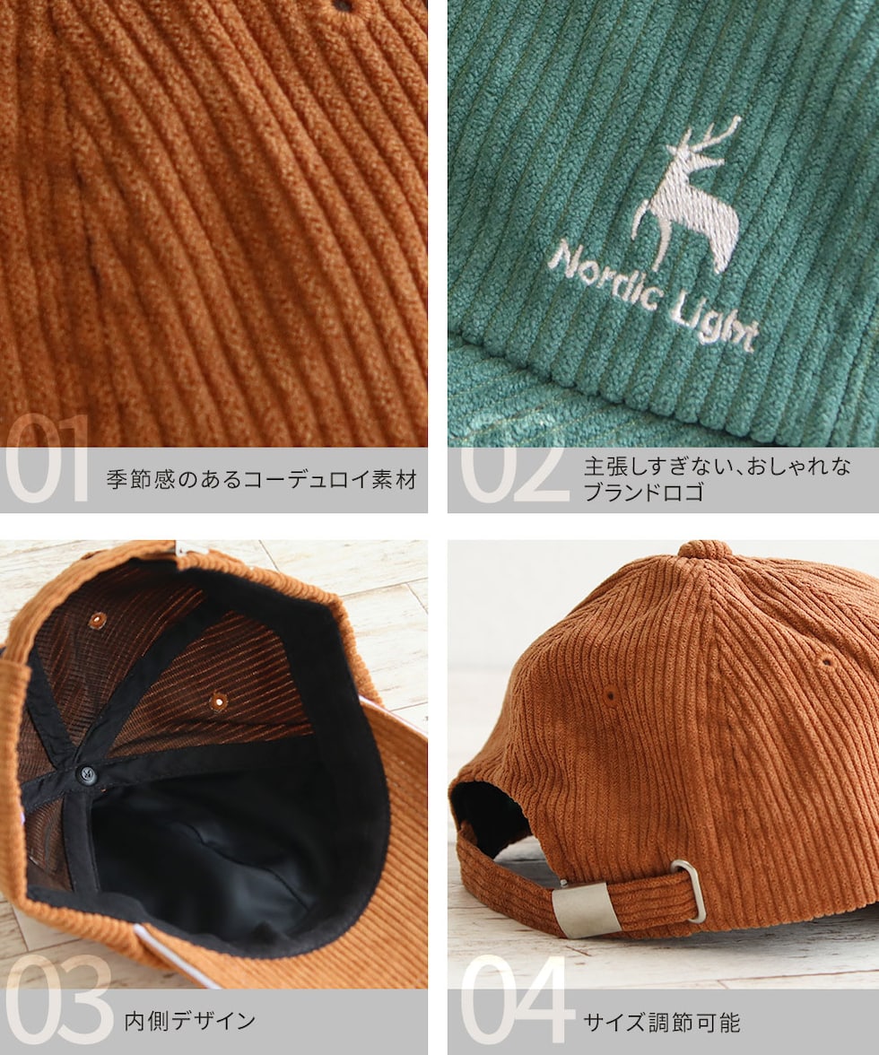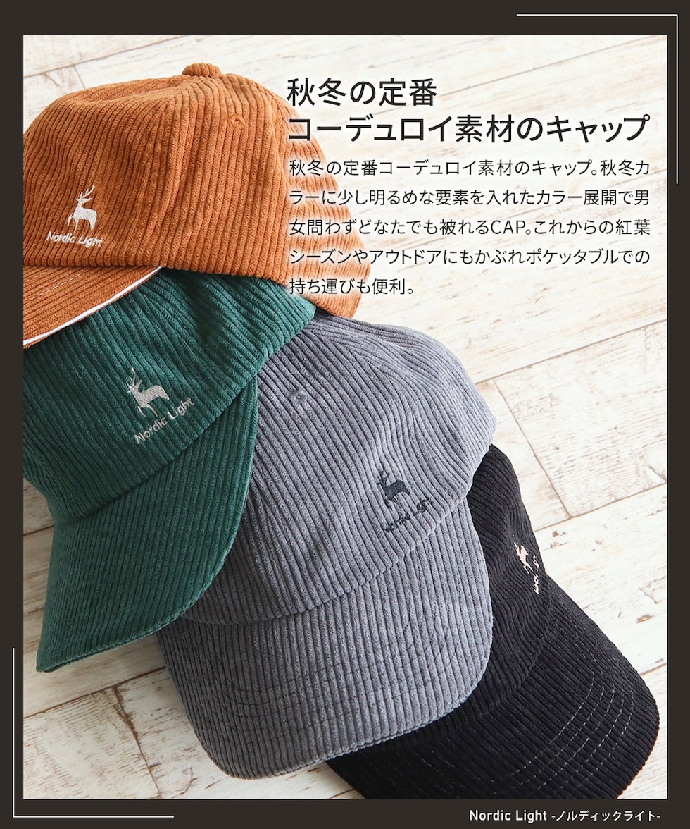 ノルディックライト 帽子 キャップ メンズ レディース コーデュロイ おしゃれ ブラック グレー ベージュ Nordic Light 4010632