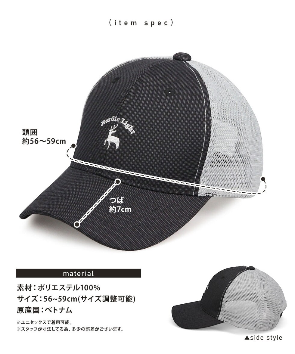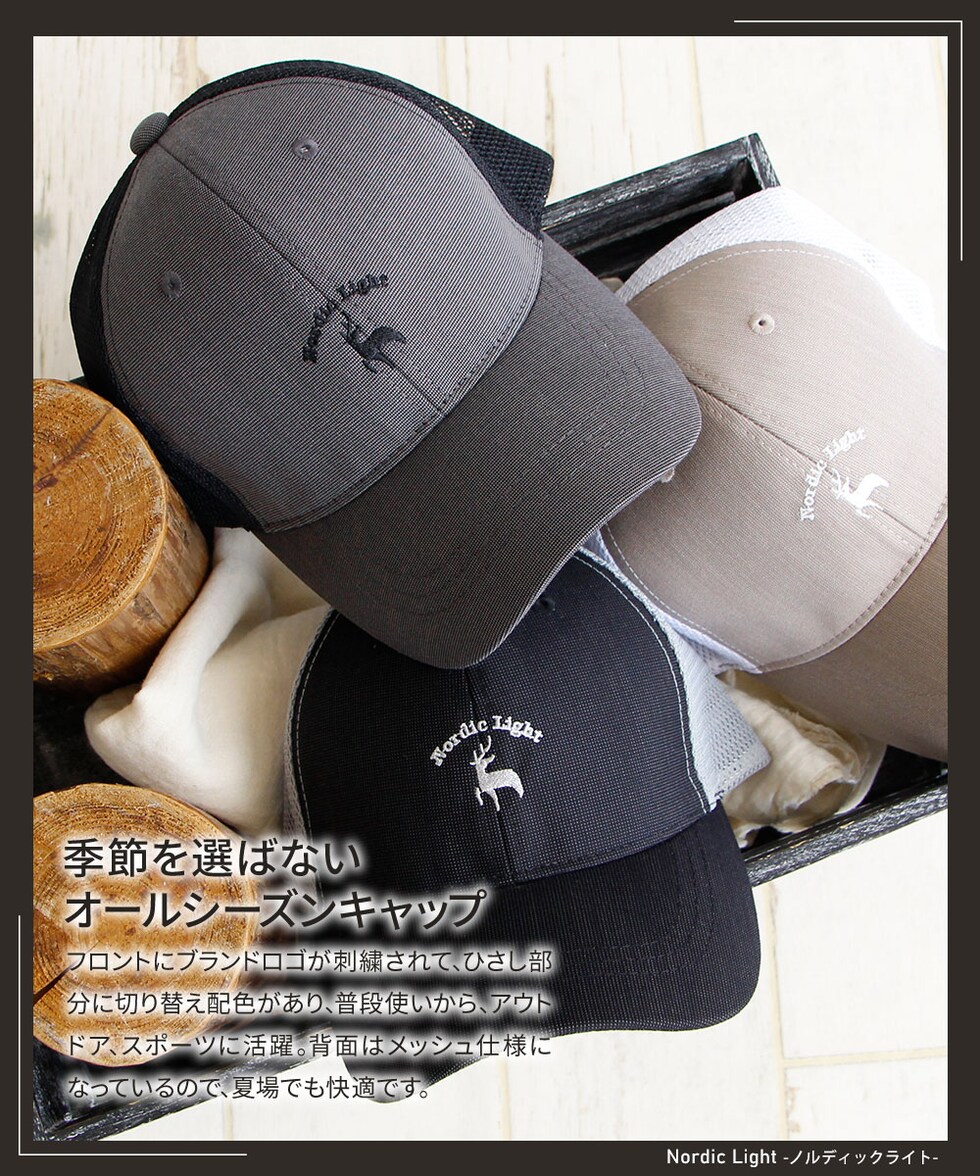 ノルディックライト 帽子 メッシュ メンズ uv 柄 おしゃれ ストラップバックレディース 黒 ブラック グレー ベージュ Nordic Light