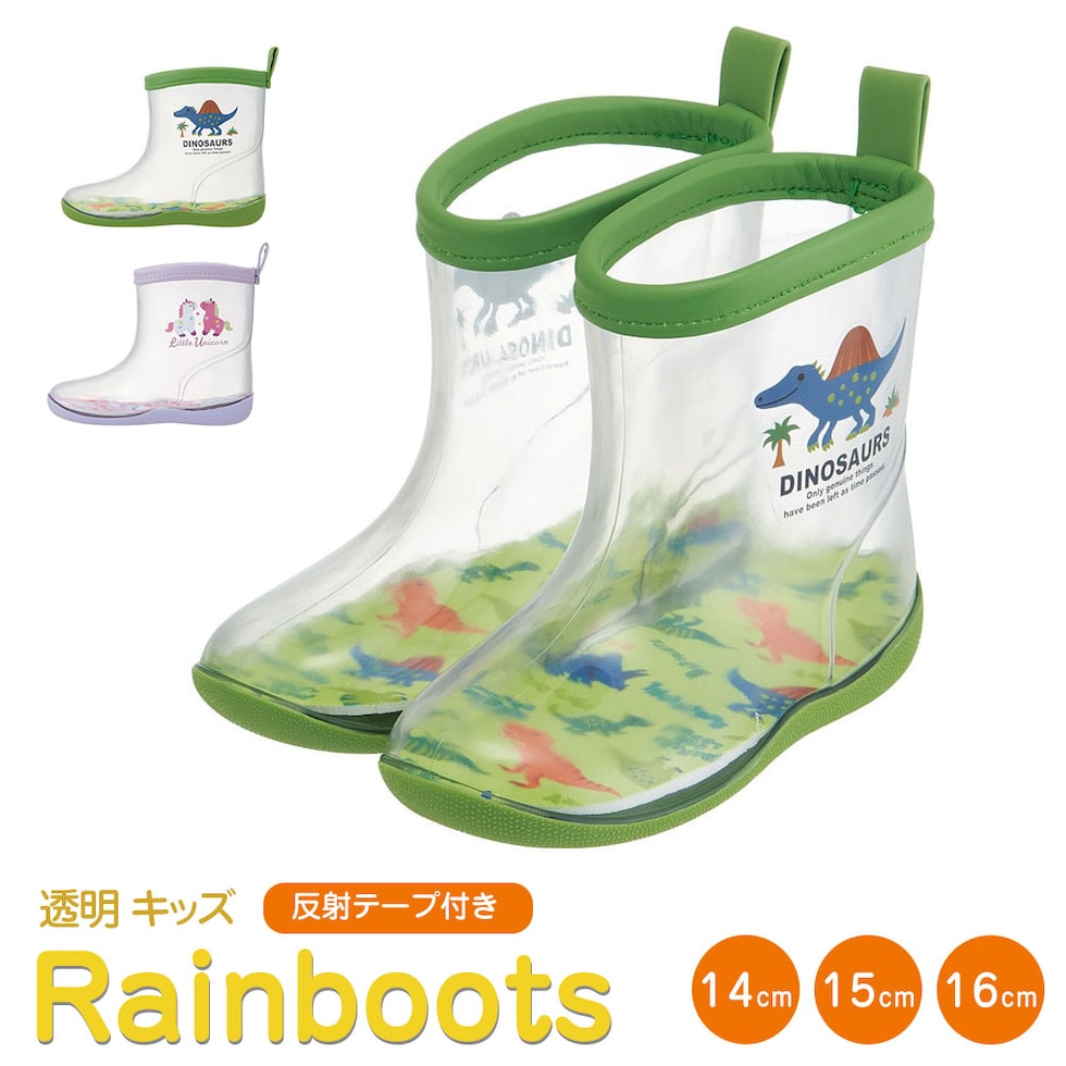 長靴 キッズ 男の子 透明 レイン ブーツ 女の子 クリア 子供 靴 防水 反射テープ 雨具 雨の日 保育園 幼稚園 通園 恐竜 ユニコーン RIBTCL