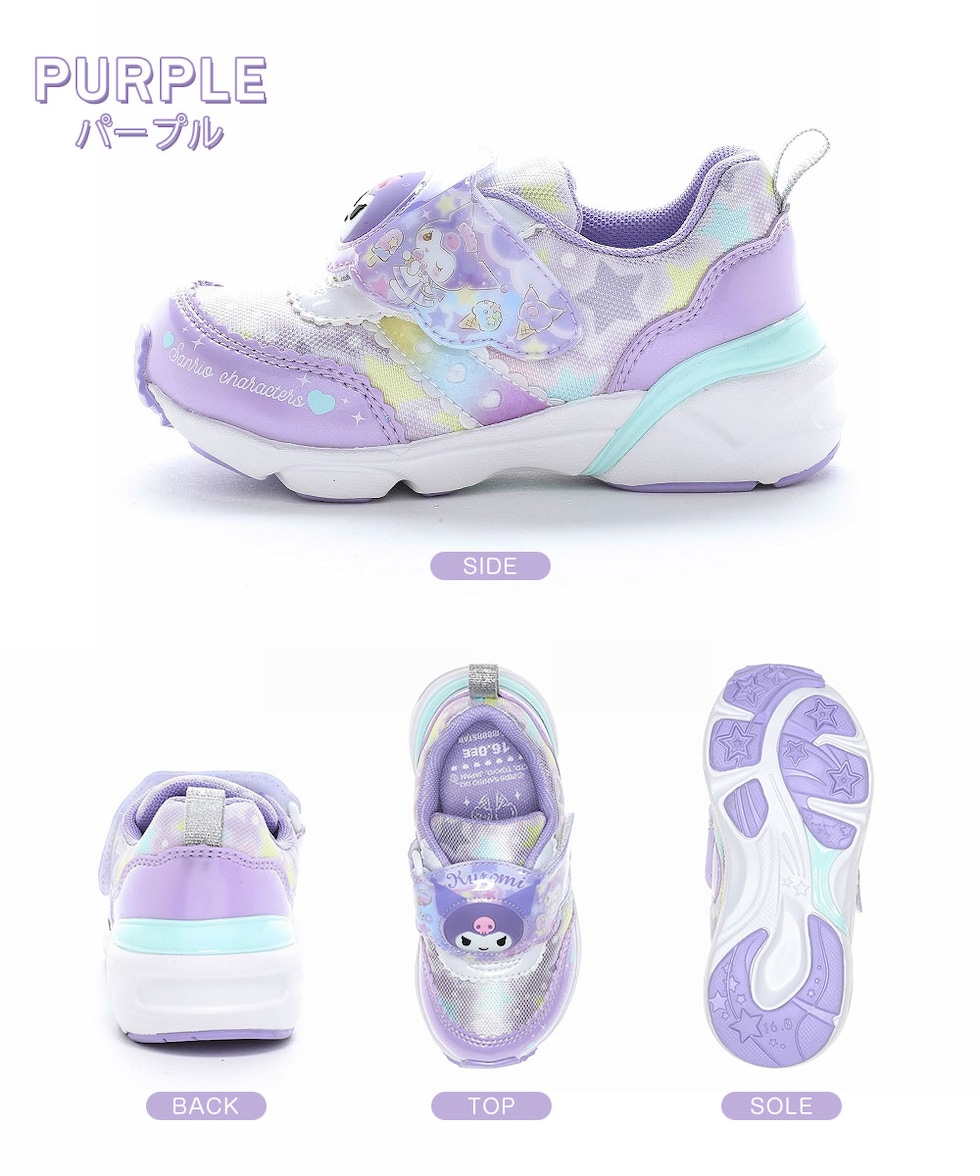 サンリオ 光る スニーカー キッズ 子供 ムーンスター かわいい キャラクター 子供靴 シューズ ni-mo パープル サックス SA C040LE