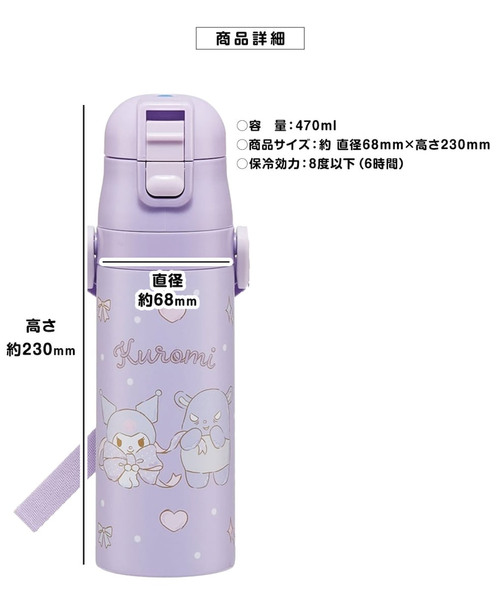 水筒 キッズ 470ml 超軽量 ワンタッチ ダイレクト ボトル 保冷 子供 直飲み 男の子 女の子 保育園 幼稚園 遠足 かわいい キャラクター ディズニー サンリオ SDC4