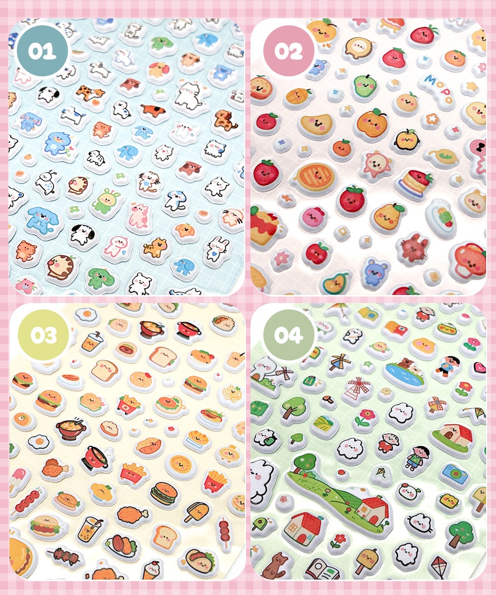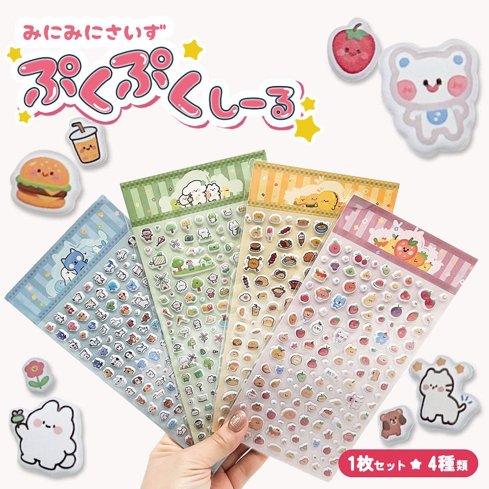 ぷっくり シール ミニ ぷくぷく もちもち セット ふわふわ ぷにぷに 立体 キャラクター 動物 イヌ ネコ 食べ物 自然 かわいい スマホケース
