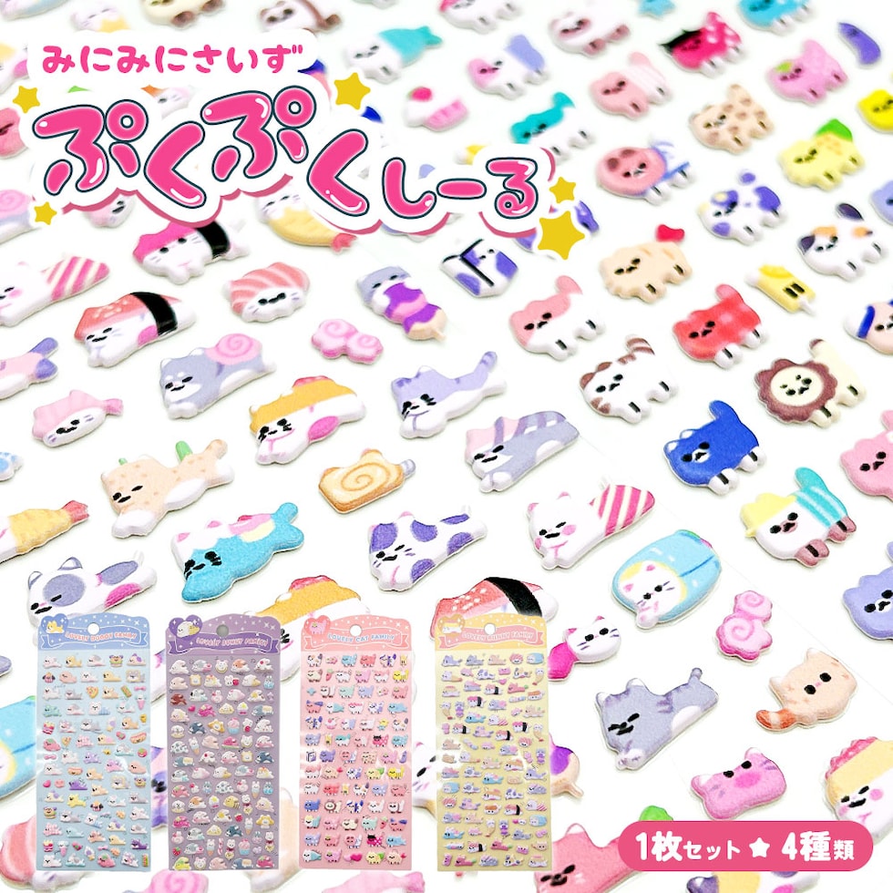 ぷっくり シール ミニ ぷくぷく もちもち セット 立体 ミニ ぷにぷに キャラクター アニマル 動物 うさぎ ネコ かわいい 手帳 スマホケース