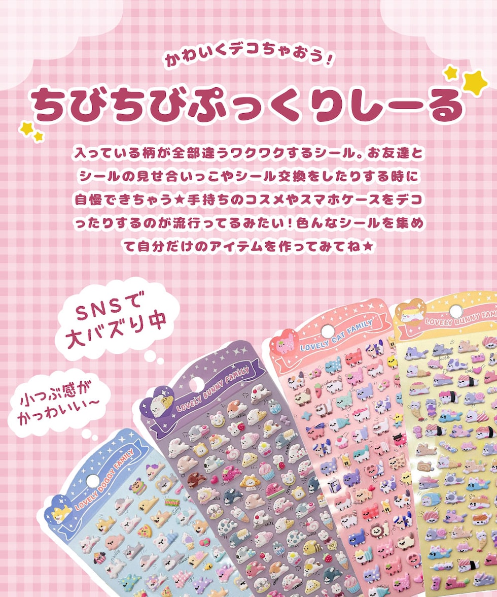 ぷっくり シール ミニ ぷくぷく もちもち セット 立体 ミニ ぷにぷに キャラクター アニマル 動物 うさぎ ネコ かわいい 手帳 スマホケースのレビュー