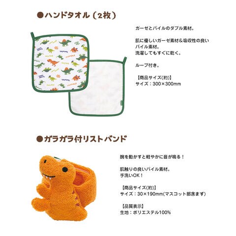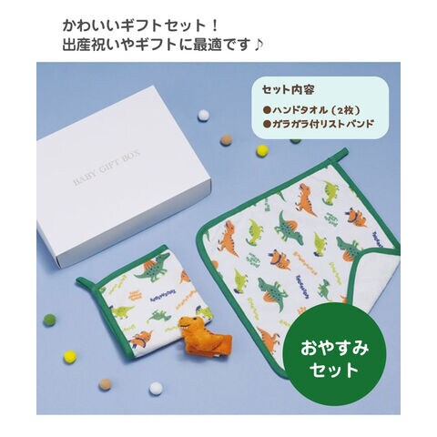 出産祝い ギフト 2点セット 男の子 ガラガラ おもちゃ ハンドタオル ベビー 誕生日 プレゼント 赤ちゃん 新生児 かわいい 恐竜 SET1089