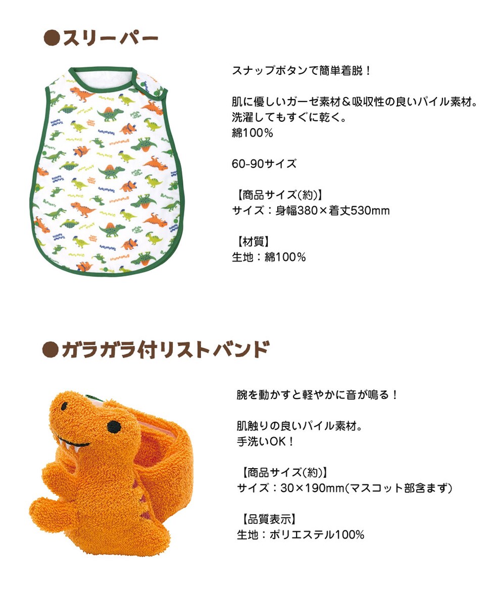 出産祝い ギフト セット 男の子 ガラガラ おもちゃ スリーパー ベビー 誕生日 プレゼント 赤ちゃん 新生児 かわいい 恐竜 SET1090