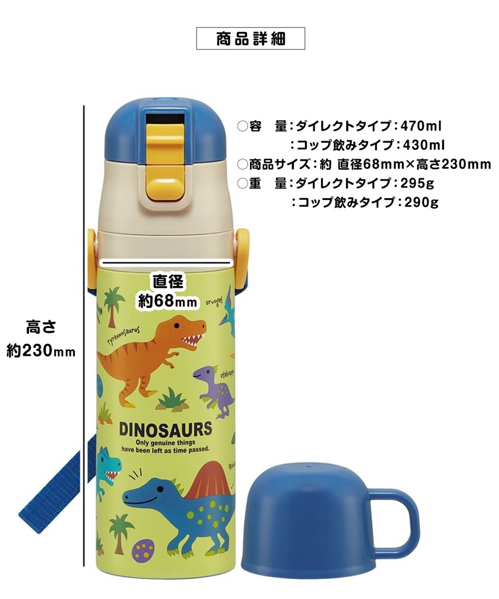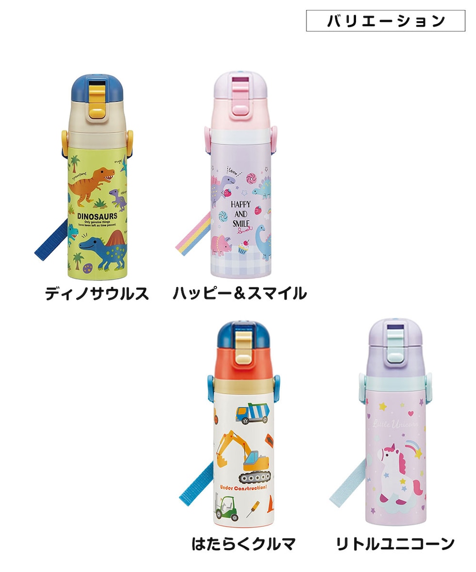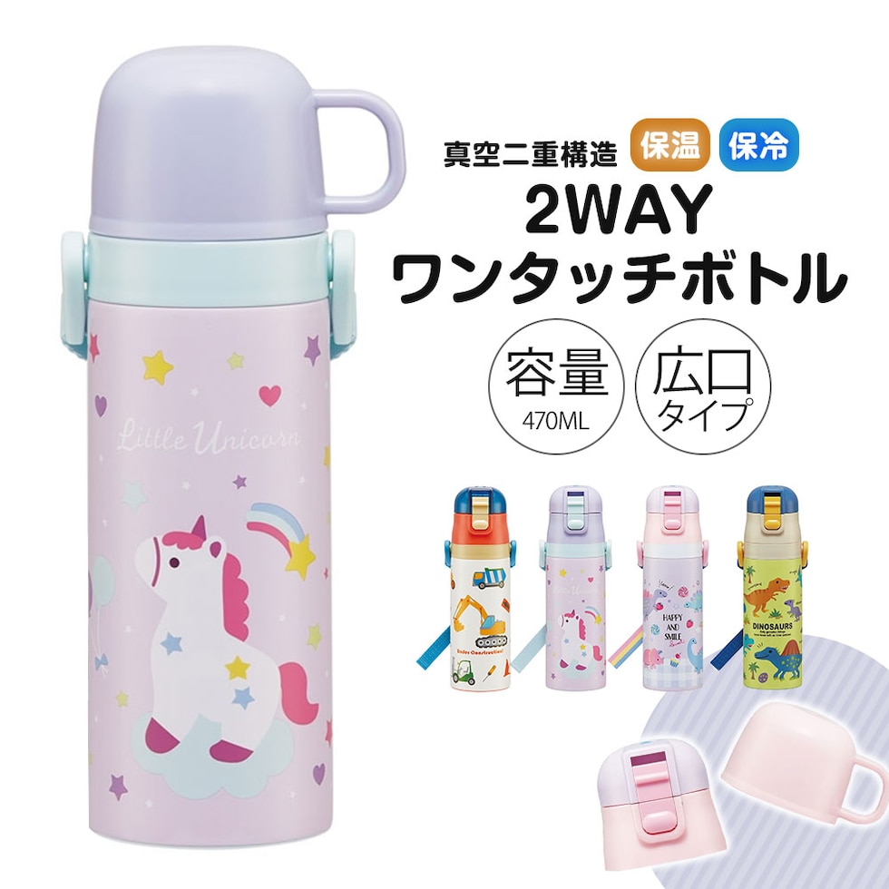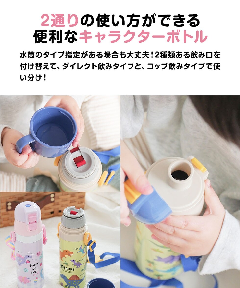 水筒 キッズ ワンタッチ コップ付き 子供 直飲み 男の子 女の子 キャラクター かわいい 保冷 保温 幼児 恐竜 ユニコーン 車 SKDC4