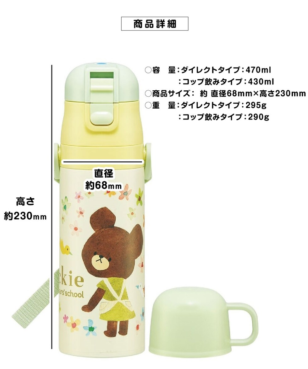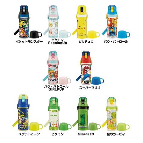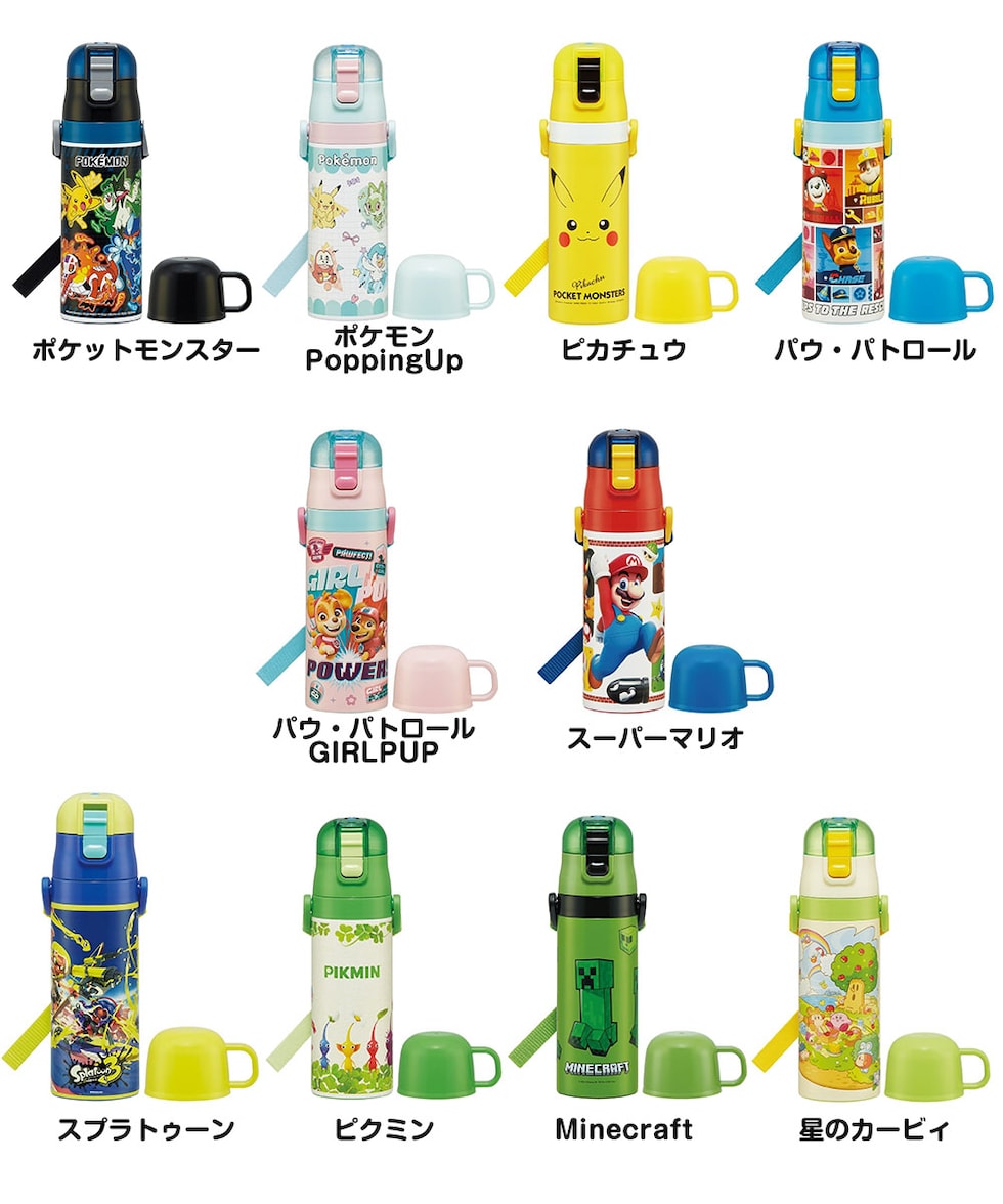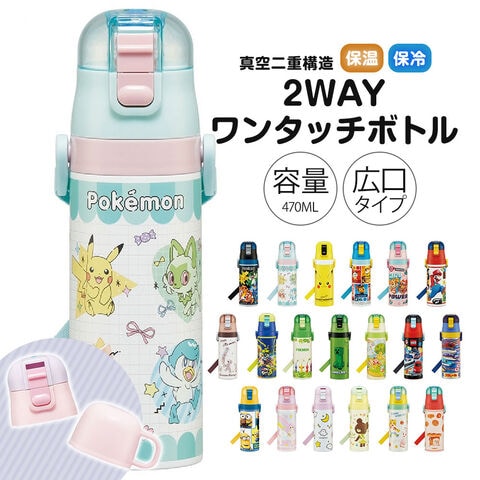 水筒 キッズ 470ml ワンタッチ コップ 子供 直飲み 男の子 女の子 キャラクター かわいい 保冷 ポケモン マリオ カービィ SKDC4