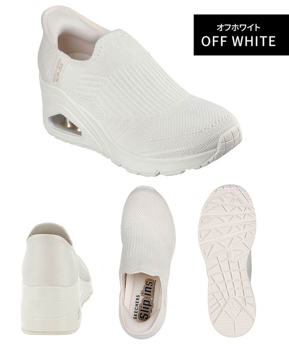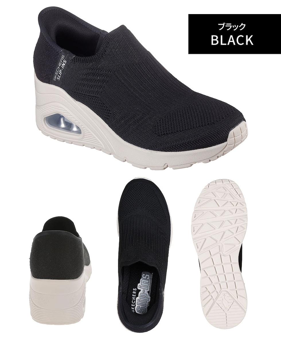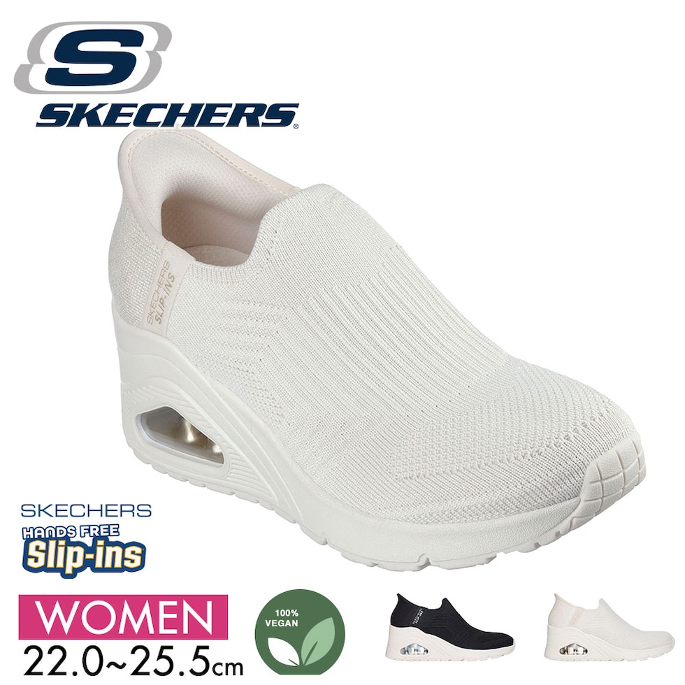 スケッチャーズ ハンズフリー スリップインズ スリッポン ローカット ウェッジソール 厚底 靴 ニットシューズ スニーカー ホワイト 黒 SKECHERS 177523
