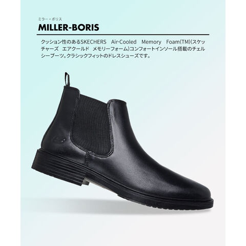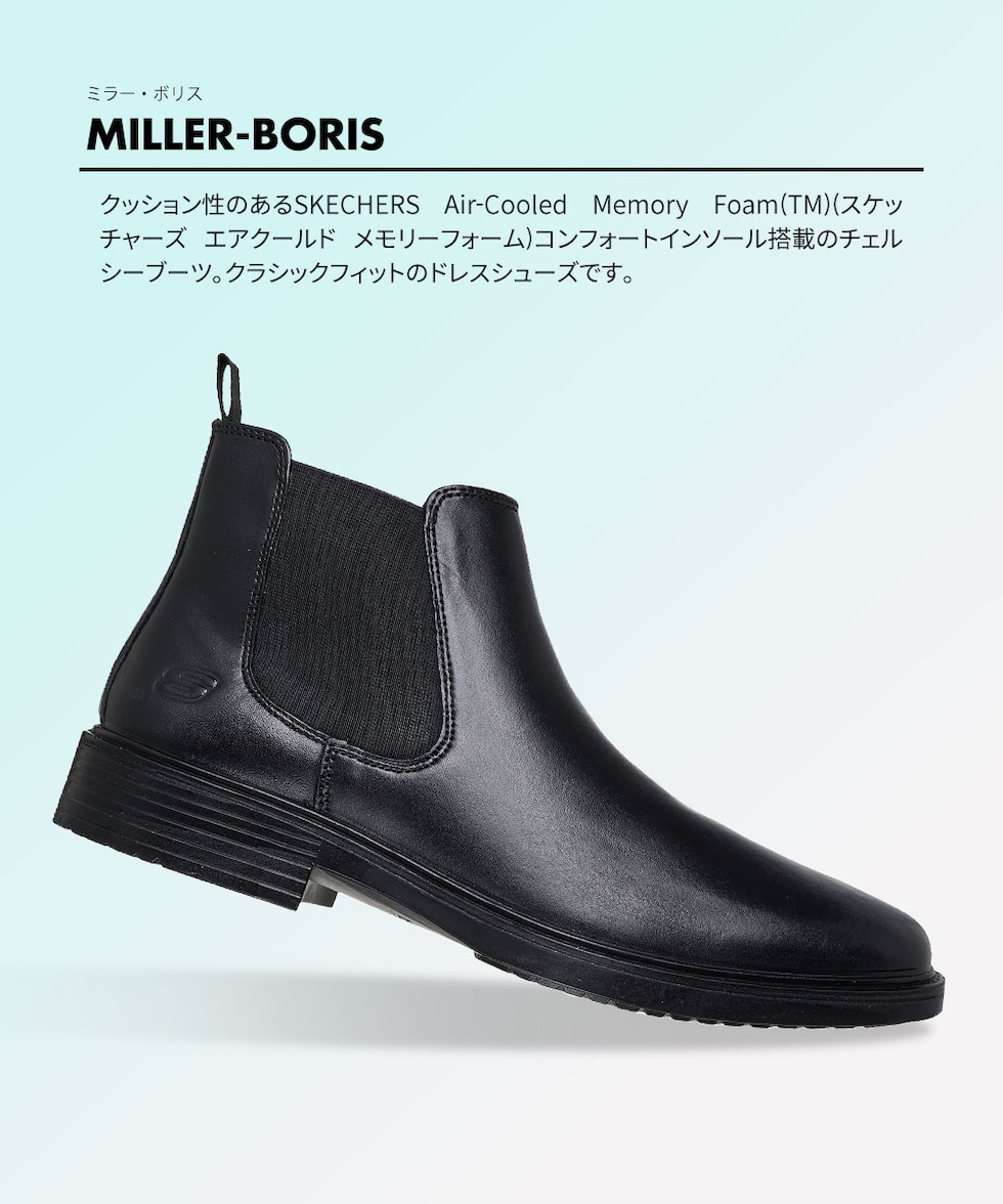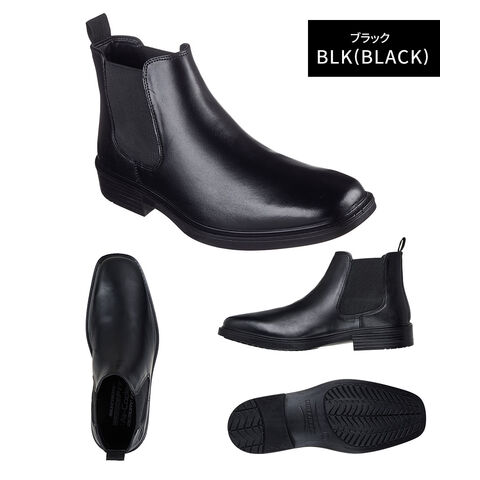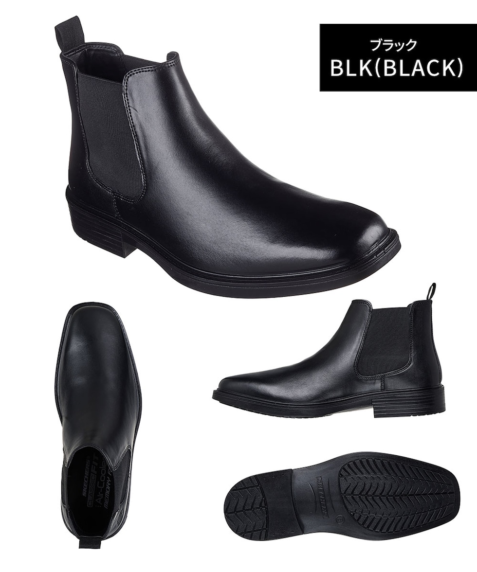 SKECHERS メンズ サイドゴアブーツ 本革 レザー シューズ 防滑 軽量 クッション性 通勤 スタイリッシュ 高級感 ビジネス 黒 205072
