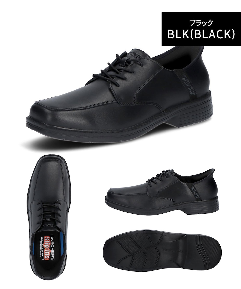 SKECHERS メンズ スリップインズ ビジネスシューズ 革靴 クッション性 幅広 通勤 黒 メモリーフォーム RELAXED FIT 205220