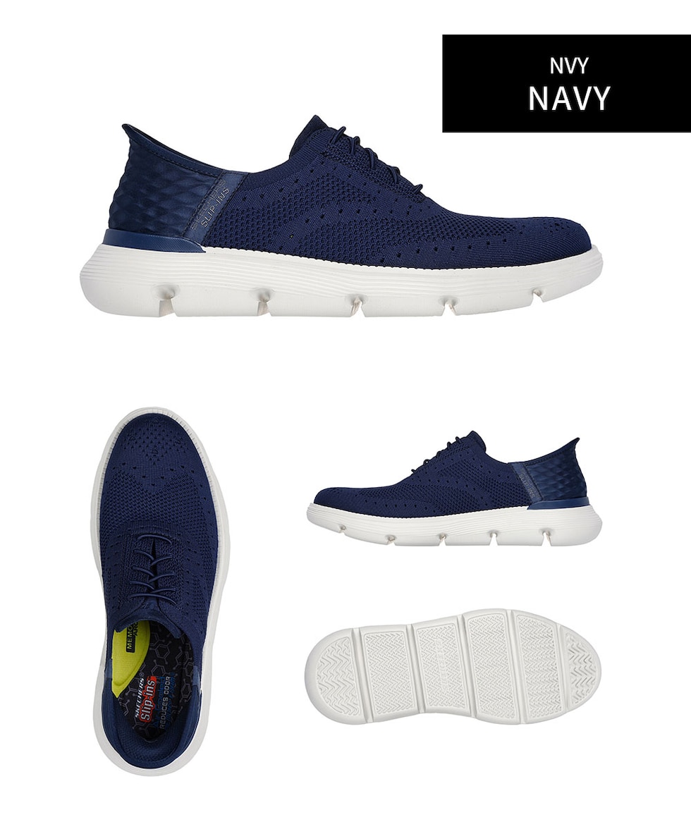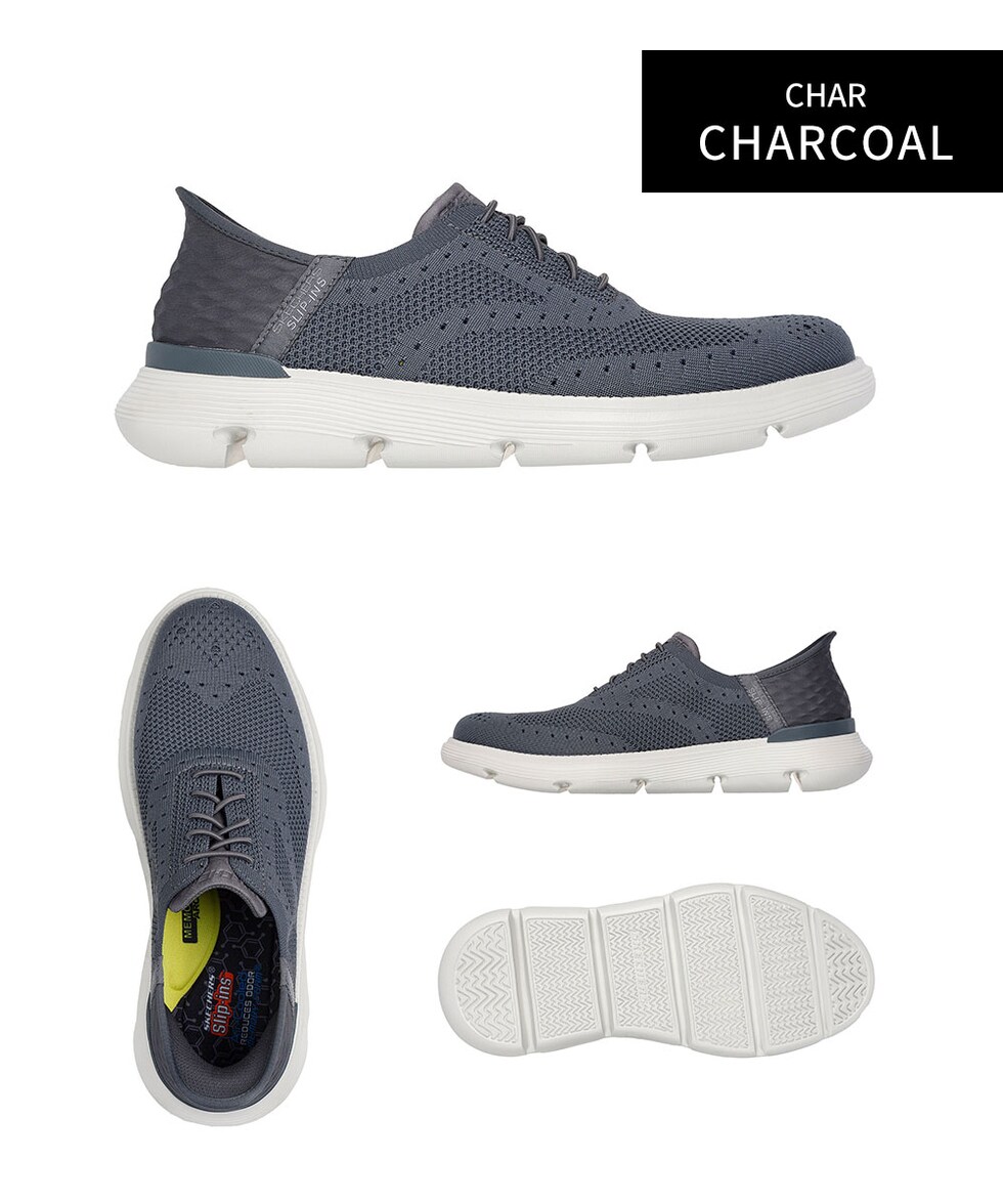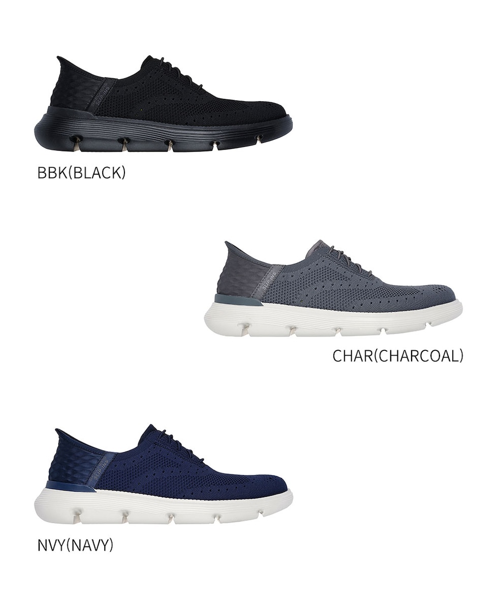 木炭入りのSkechers Air-Cooled Memory Foam(スケッチャーズ エアクールドメモリーフォーム)インソール、サポート力を高めるスケッチャーズGoga Mat Arch(ゴガマットアーチ)が特長のClassic Fit(クラシックフィット)ウィングチップスタイル。