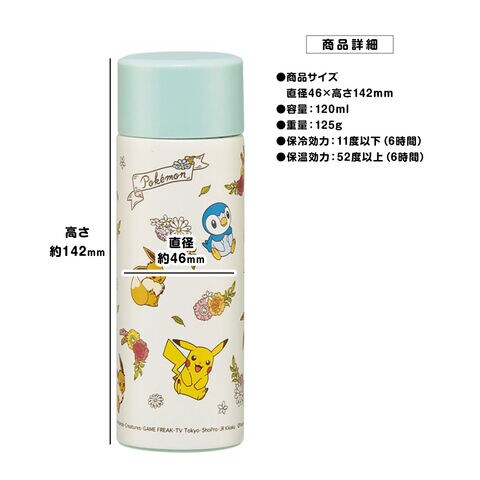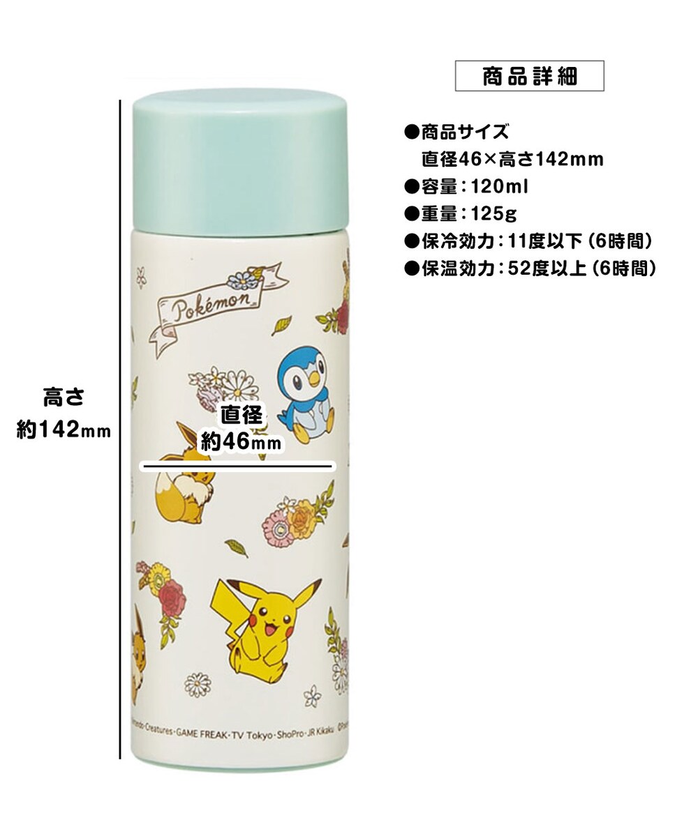 水筒 120ml ミニボトル 軽量 ステンレス マグボトル 小さめ ダイレクトボトル 直飲み 保冷 保温 真空二層構造 広口 ポケモン SMBC1B