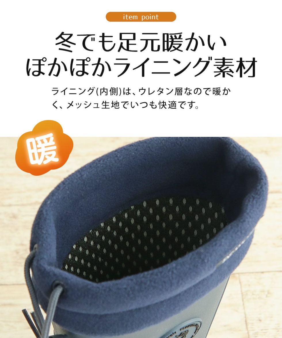 ライニング(内側)は、ウレタン層なので暖かく、メッシュ生地でいつも快適です。