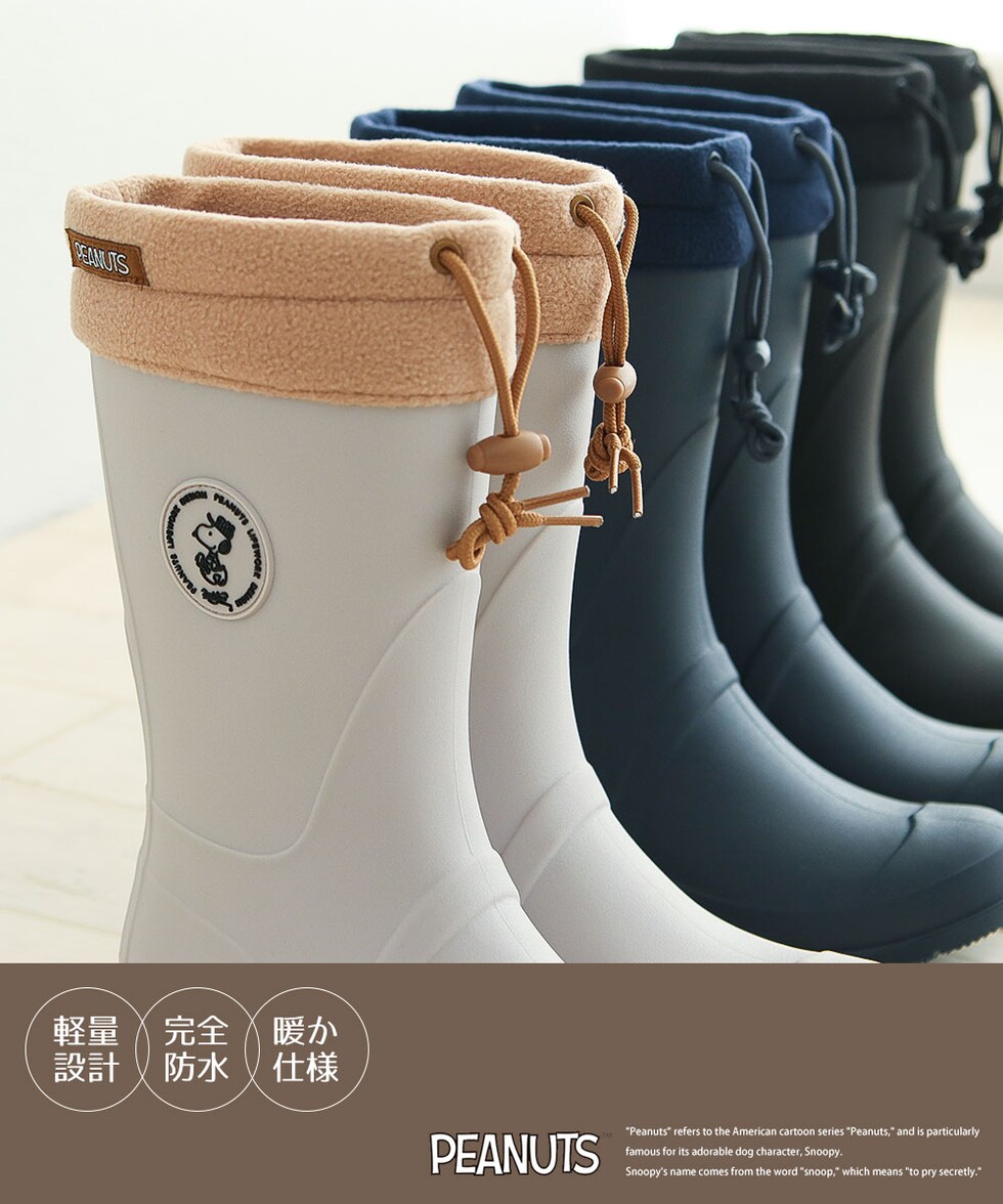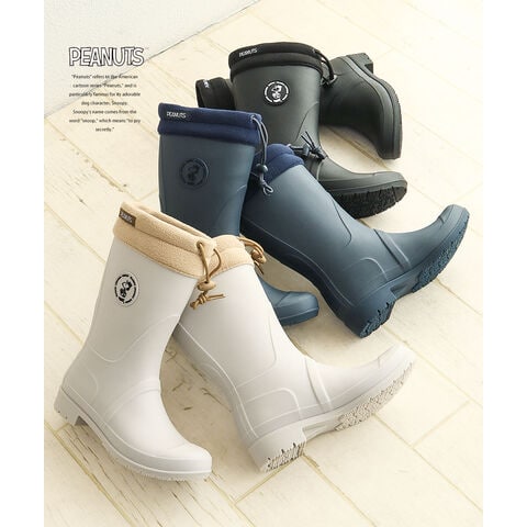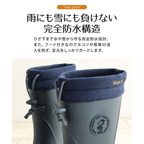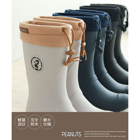 スヌーピー スノー ブーツ レディース 防水 おしゃれ レイン ロング 完全防水 防滑 防寒 長靴 雪 黒 ブラック アイボリー ネイビー フード付き