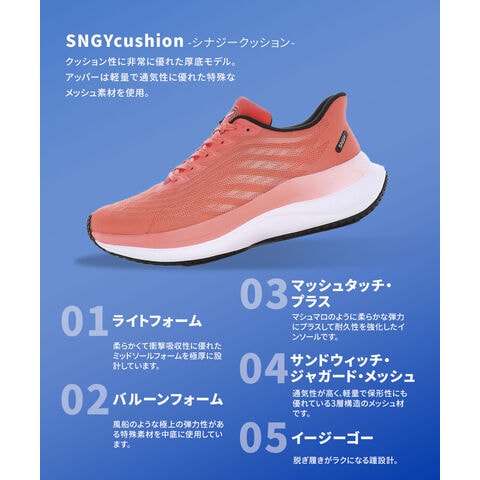 クッション性に非常に優れた厚底モデルで、アッパーは軽量で通気性に優れた特殊なメッシュ素材です。