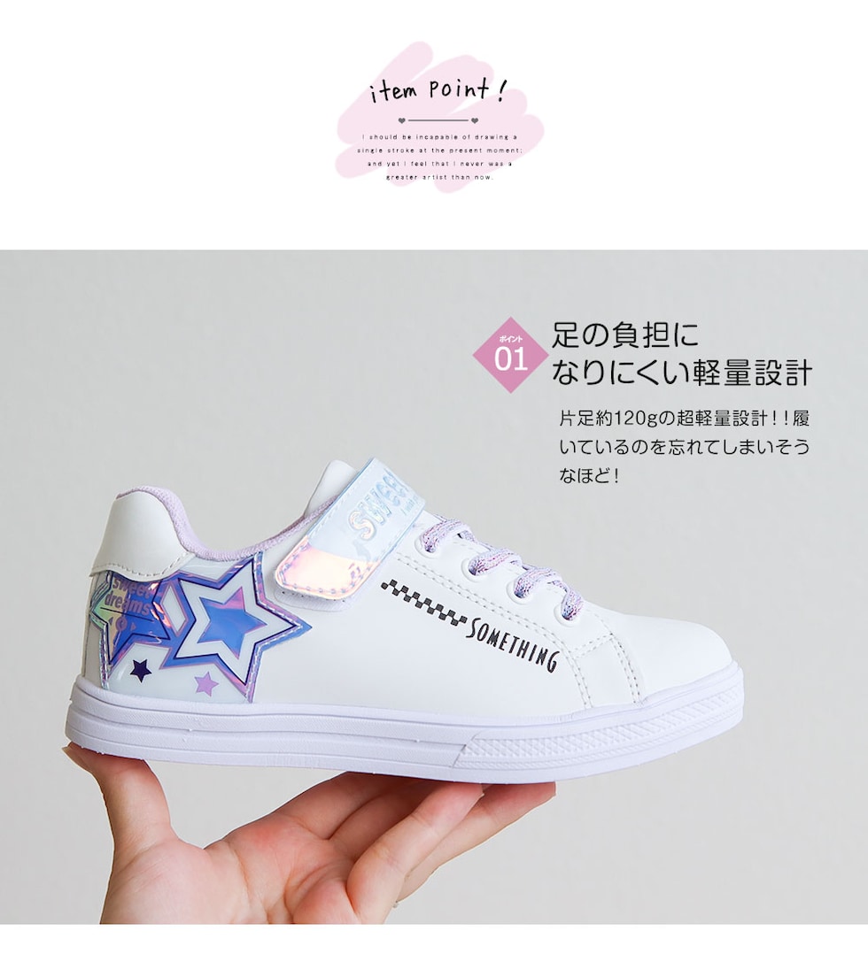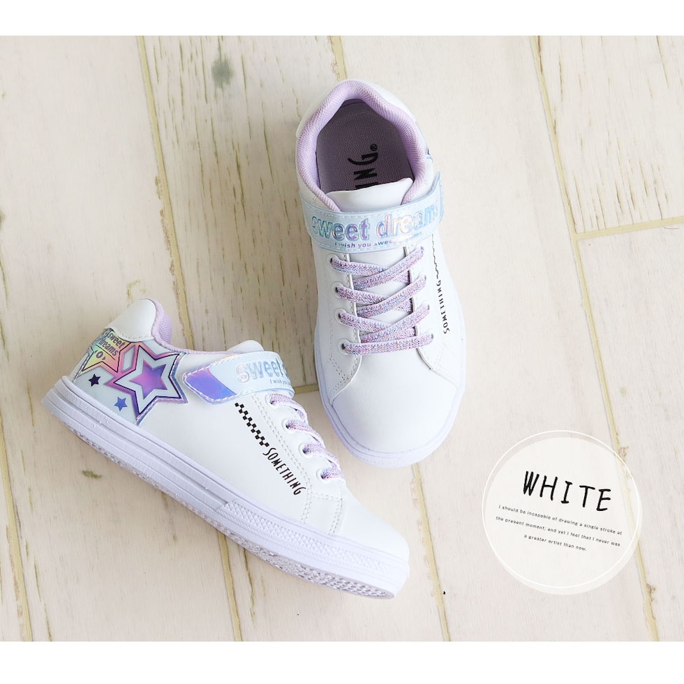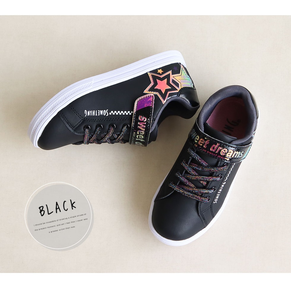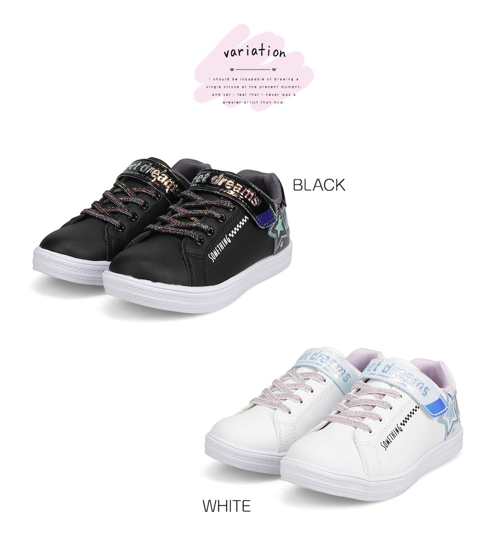 サムシングエドウィン 子供靴 スニーカー 女の子 ローカット 軽量 スニーカー 白 ジュニア スニーカー シューズ ガールズ キラキラ 星柄 かわいい デコレーション アレンジ シール 転写シート付き ブラック 黒 ホワイト 3144