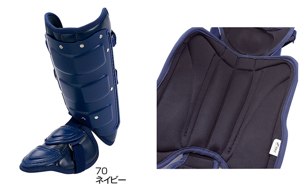 スネとの密着性を高めるため、パッドの裏側に山脈型の凸部を2 本配置し、運動時に起こる「ズレ」を防いでいます。また、大型サイドパッドで防御性とフィット性を高めています。