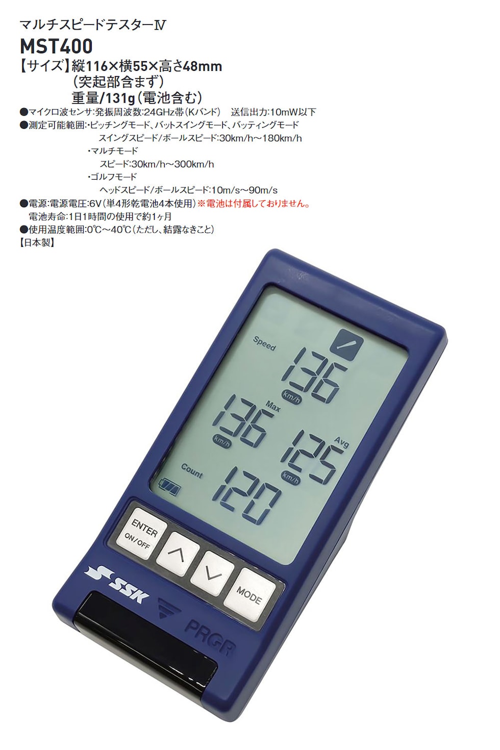 SSK 野球 スピードガン スイングスピード 投球速度 測定器 打球速度 計測 練習 トレーニング 野球用品 エスエスケイ マルチスピードテスター mst400