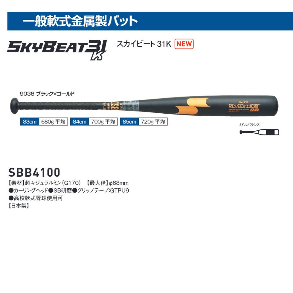 SSK 野球 バット 野球バット 大人用 軟式 一般 ミドルバランス 金属バット 軟式用バット 中学野球 軟式野球 金属製バット エスエスケイ スカイビート31K sbb4100