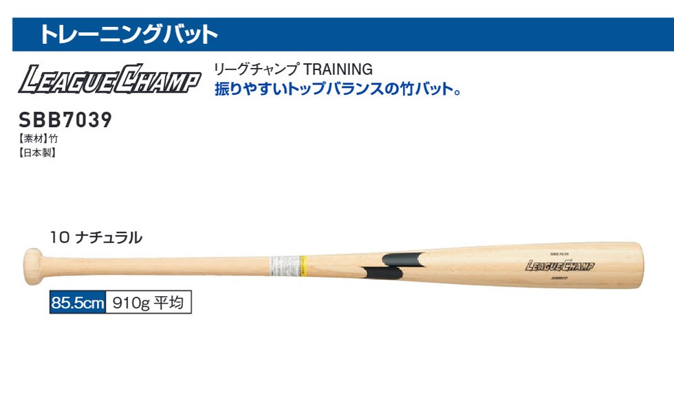 SSK 野球 バット 竹バット トレーニングバット 85.5cm 野球バット 竹製 木製バット 大人用 長尺バット 高校野球 エスエスケイ リーグチャンプ TRAINING sbb7039