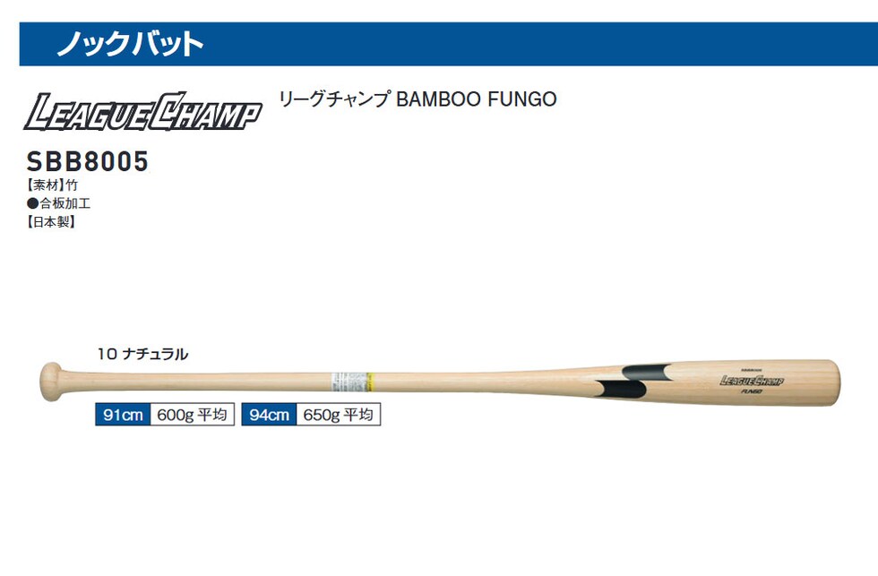SSK 野球 バット 竹バット トレーニングバット 91cm 94cm 野球バット 竹製 木製バット 大人用 長尺バット エスエスケイ リーグチャンプ BAMBOO FUNGO sbb8005