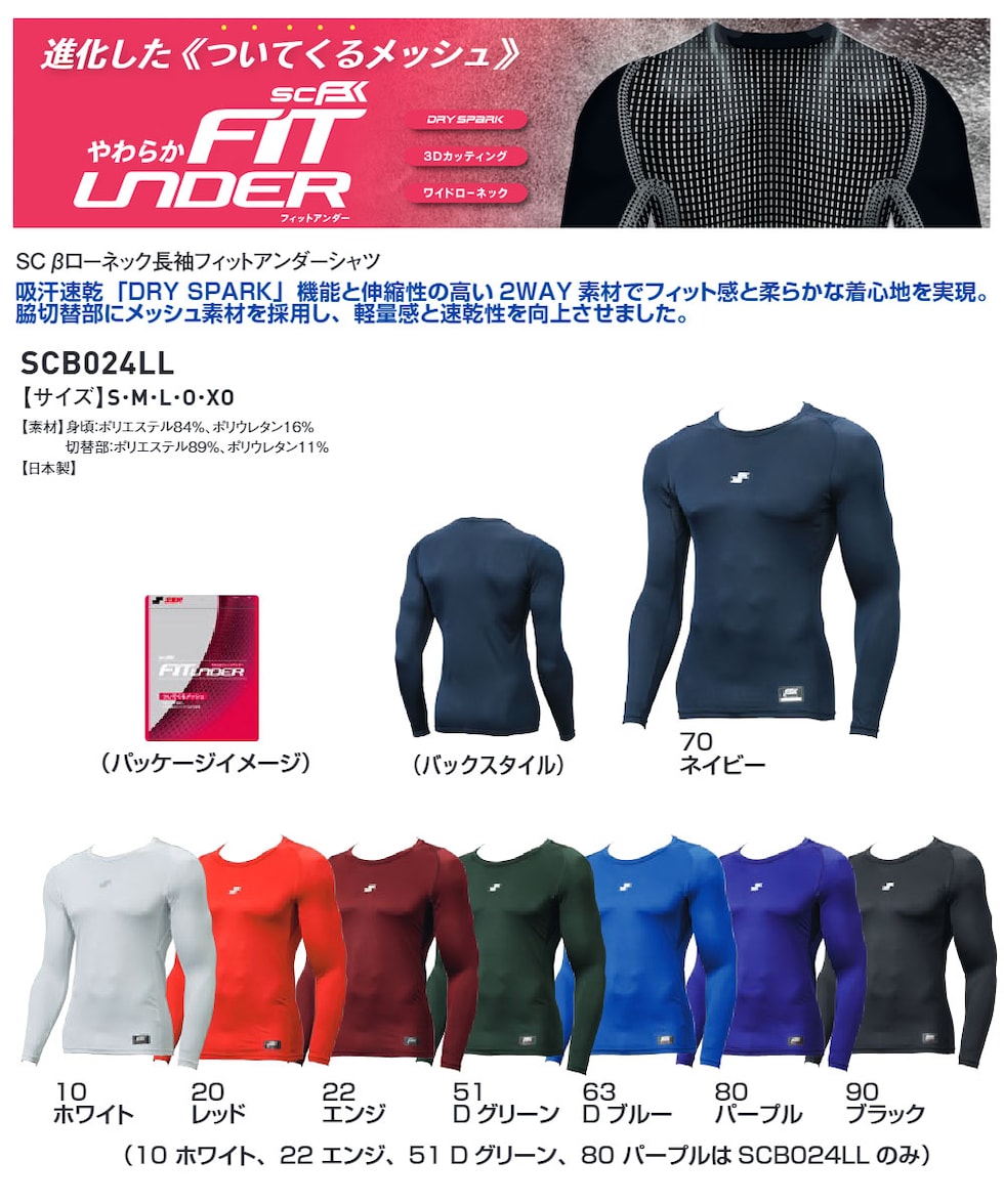 ■SSK SCβローネック長袖フィットアンダーシャツ