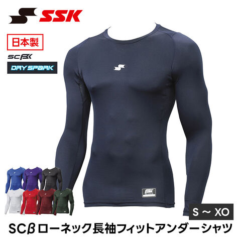 SSK 野球 アンダーシャツ 長袖 ローネック フィット 大人 丸首 インナー 長袖シャツ tシャツ メンズ ストレッチ クルーネック エスエスケイ scb024ll