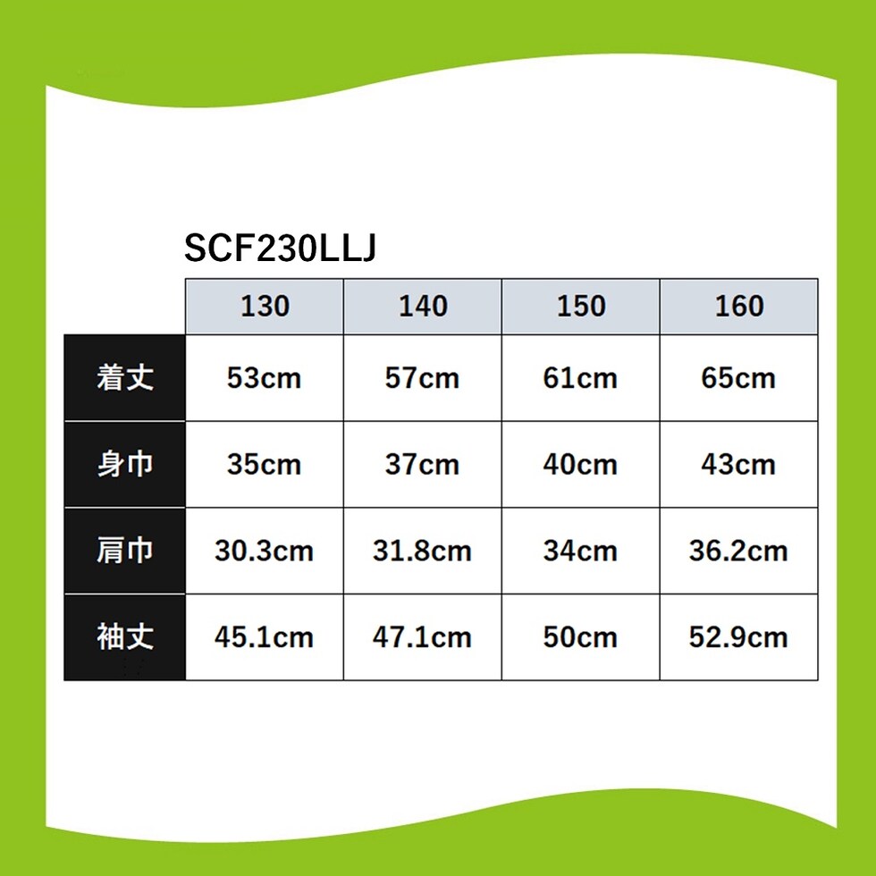 130: 着丈 53cm / 身巾 35cm / 肩巾 30.3cm / 袖丈 45.1cm