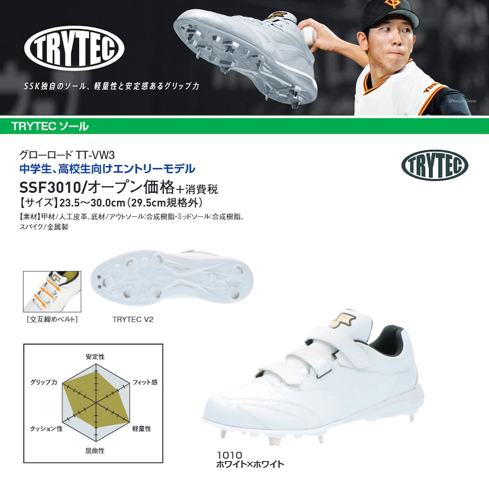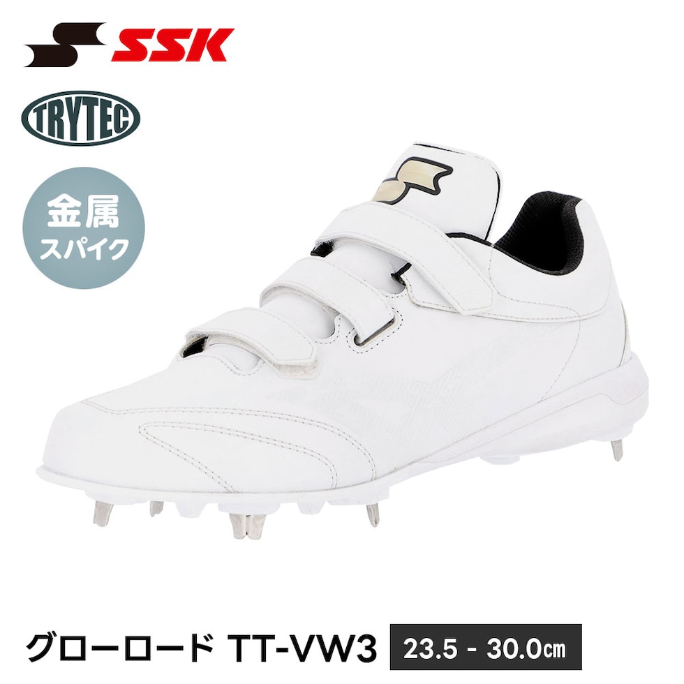 SSK 野球 スパイク 白 金具 野球スパイク マジックテープ ベルト 高校野球対応 中学生 高校生 大人 硬式 軟式 ローカット ホワイト エスエスケイ ssf3010