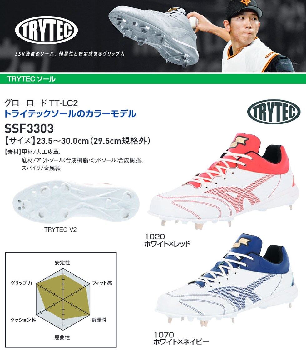 SSK 野球 スパイク 白 金具 野球スパイク 高校野球対応 中学生 高校生 大人 硬式 軟式 ローカット ホワイト エスエスケイ グローロードTT-LC2 ssf3303