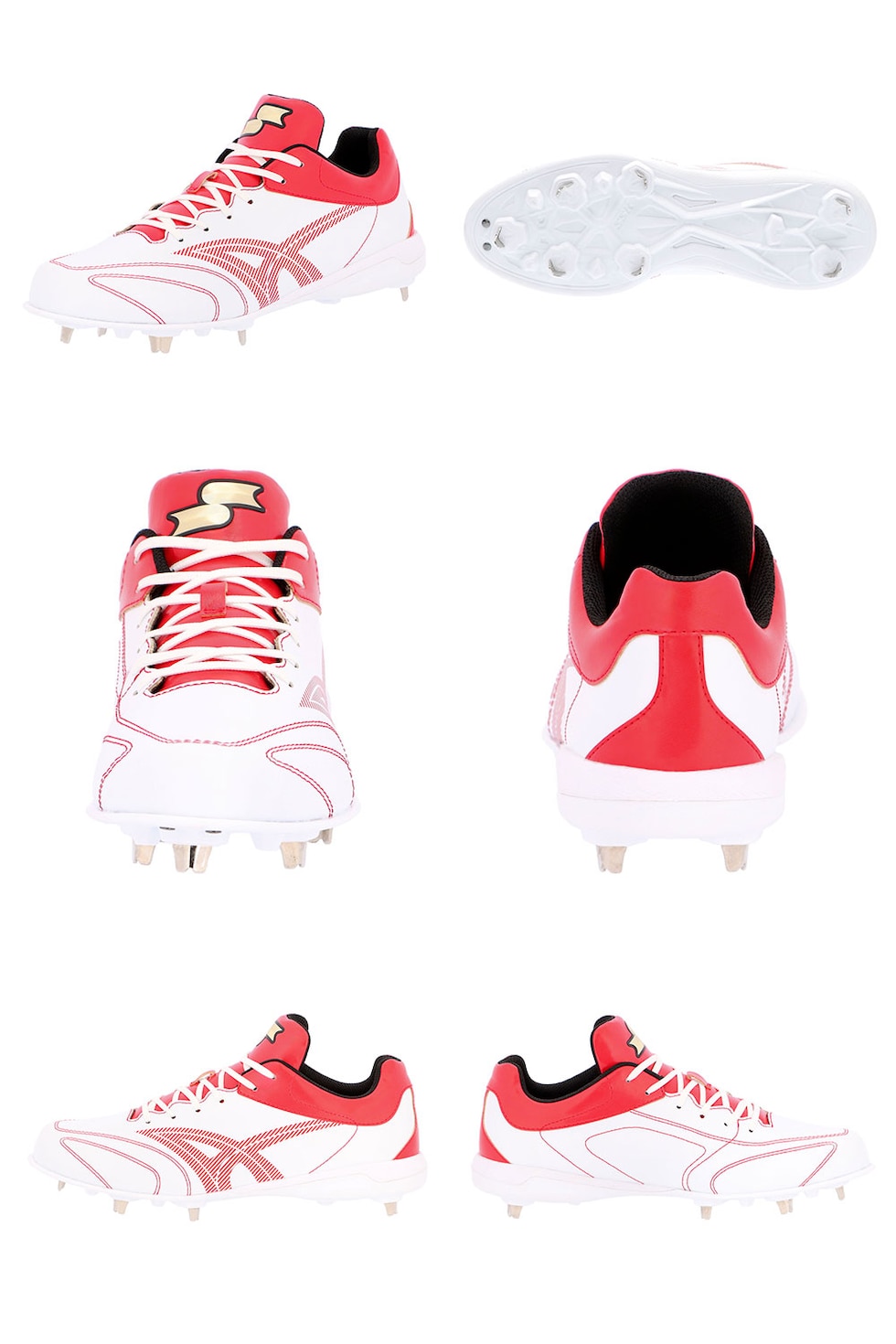 素材:甲材/人工皮革、底材/アウトソール:合成樹脂・ミッドソール:合成樹脂、スパイク/金属製