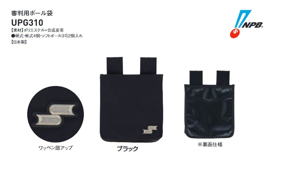 審判ボール袋弾丸ワッペン付きモデル。肌面には合皮を使用、汗染みを防ぎます。