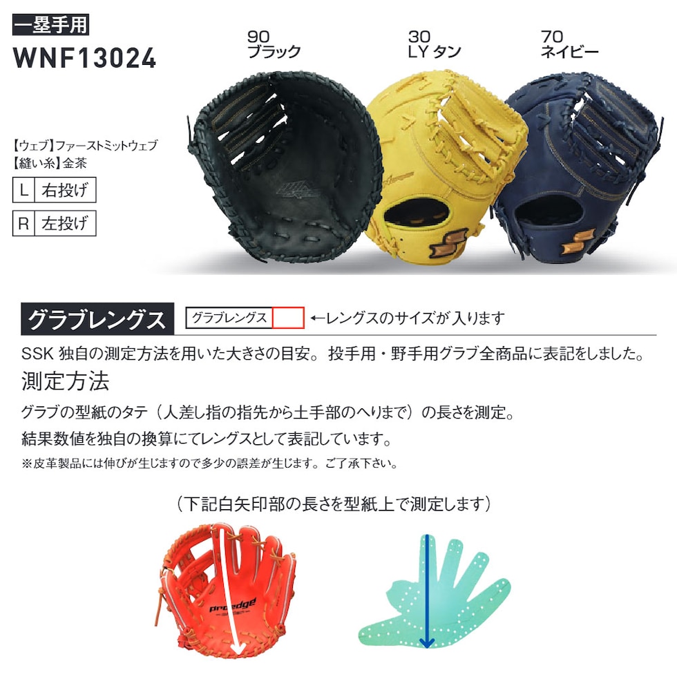SSK 野球 グローブ 軟式 大人 一塁手 ファースト 右投げ 左投げ 野球グローブ グラブ 一般 高校生 中学生 軟式野球 部活 草野球 エスエスケイ wnf13024