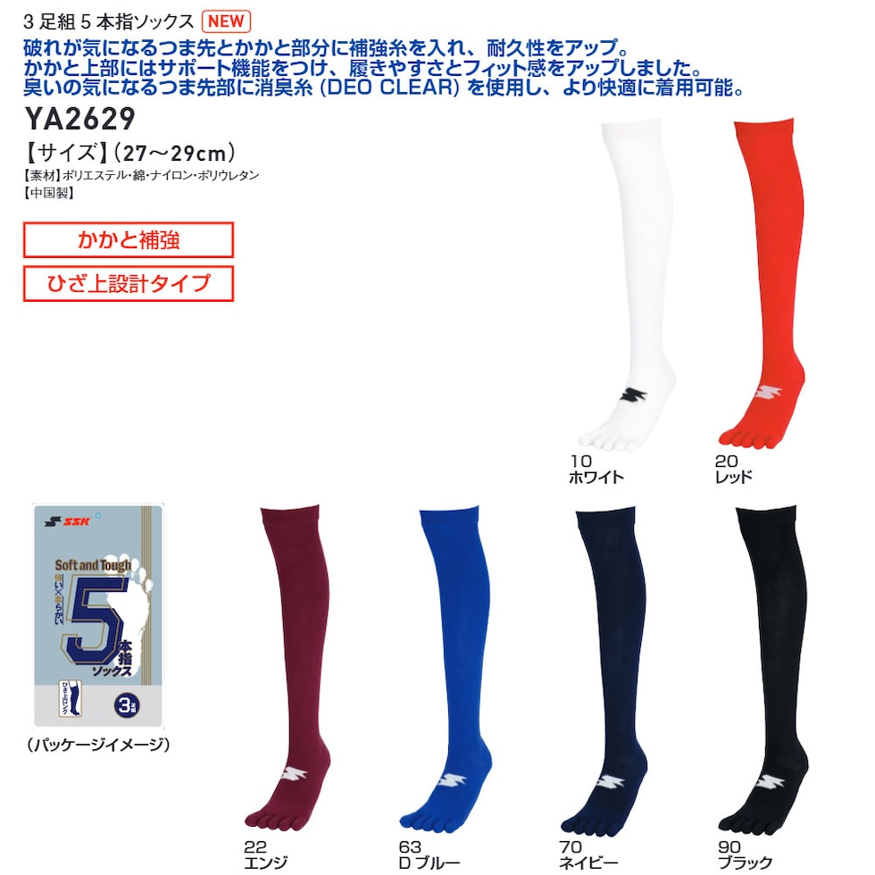 SSK 野球 ソックス 5本指 3足組 ショート 野球靴下 27-29cm 黒 白 ブラック ホワイト ネイビー アンダーソックス 靴下 エスエスケイ 3足組5本指ソックス ya2629