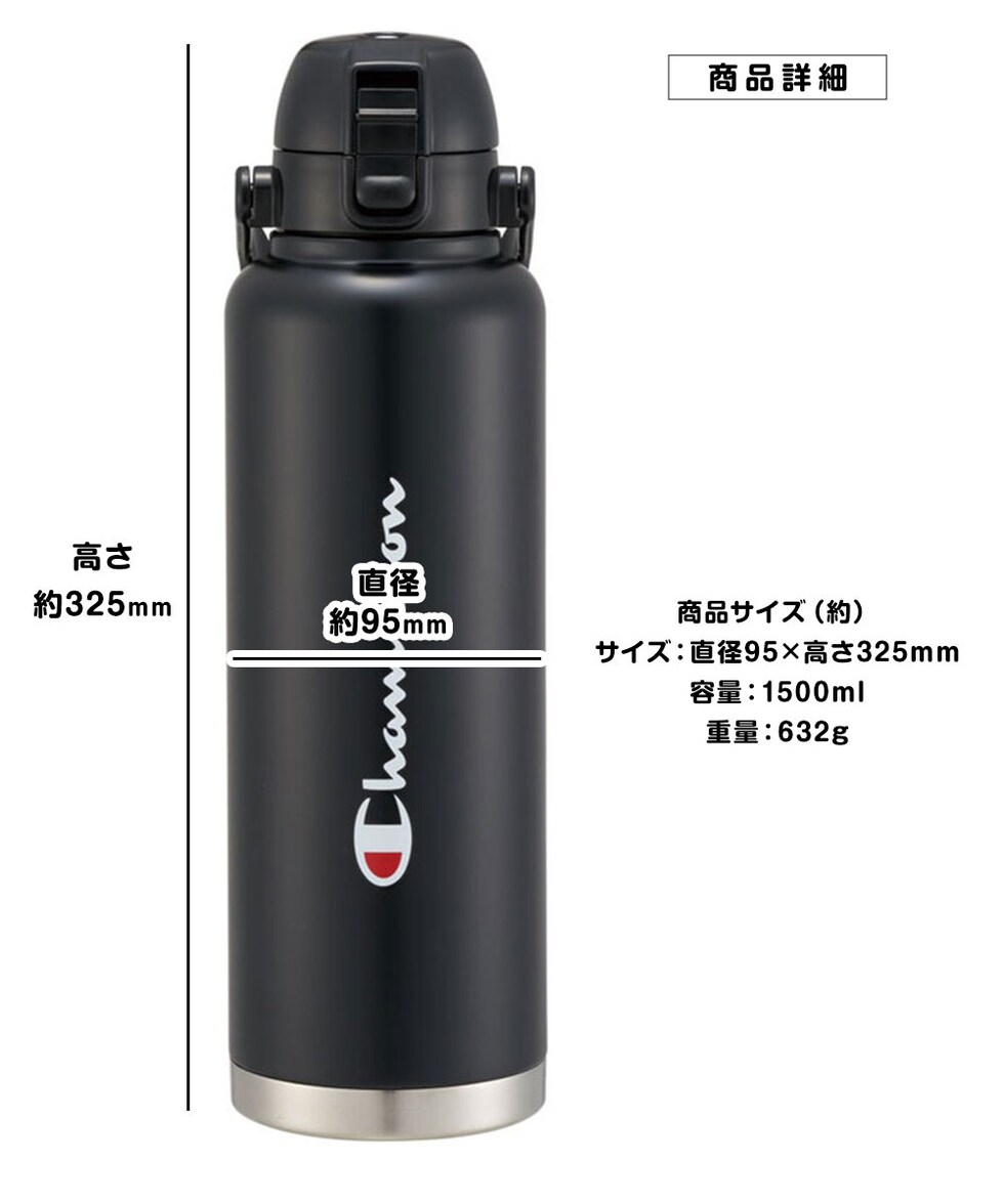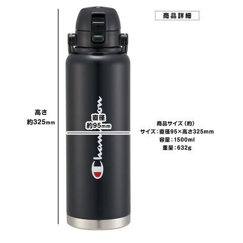 ステンレスボトル ダイレクト ワンプッシュ 水筒 大容量 1.5L 大きめ 保冷 直飲み ハンドル付き 広口 真空断熱 黒 チャンピオン STD15H