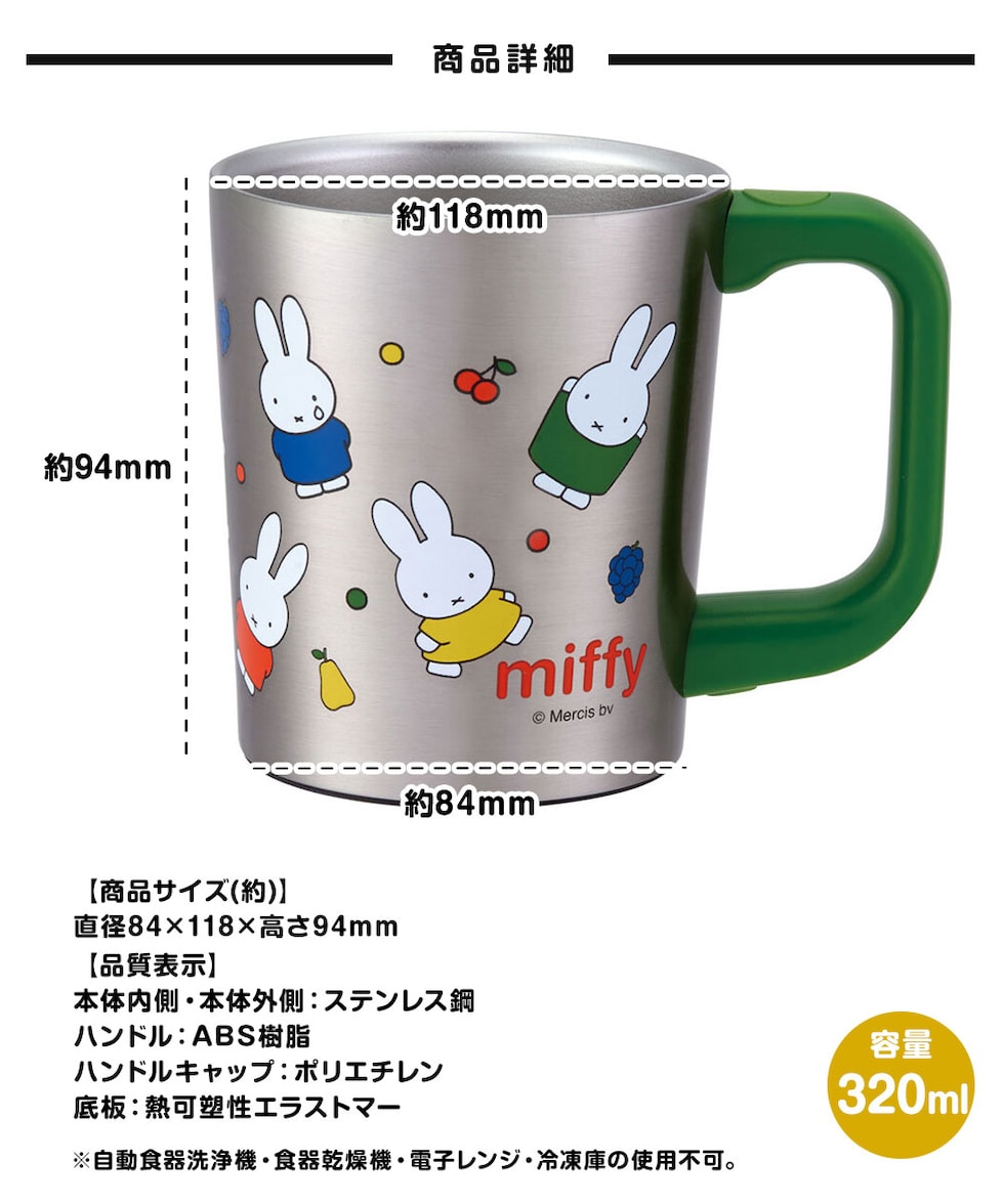 マグカップ ステンレス 320ml 保温 保冷 結露しにくい 真空断熱 ステンレスマグ コップ ハンドル付マグカップ キャンプ ミッフィー STMG3