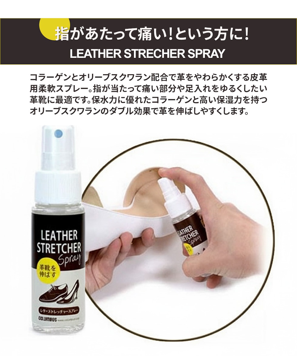 コロンブス レザーストレッチャースプレー 皮革用 柔軟剤 コラーゲン オリーブスクワラン配合 40mL レザー シューケア 革靴 ストレッチ 痛み対策