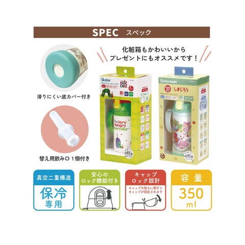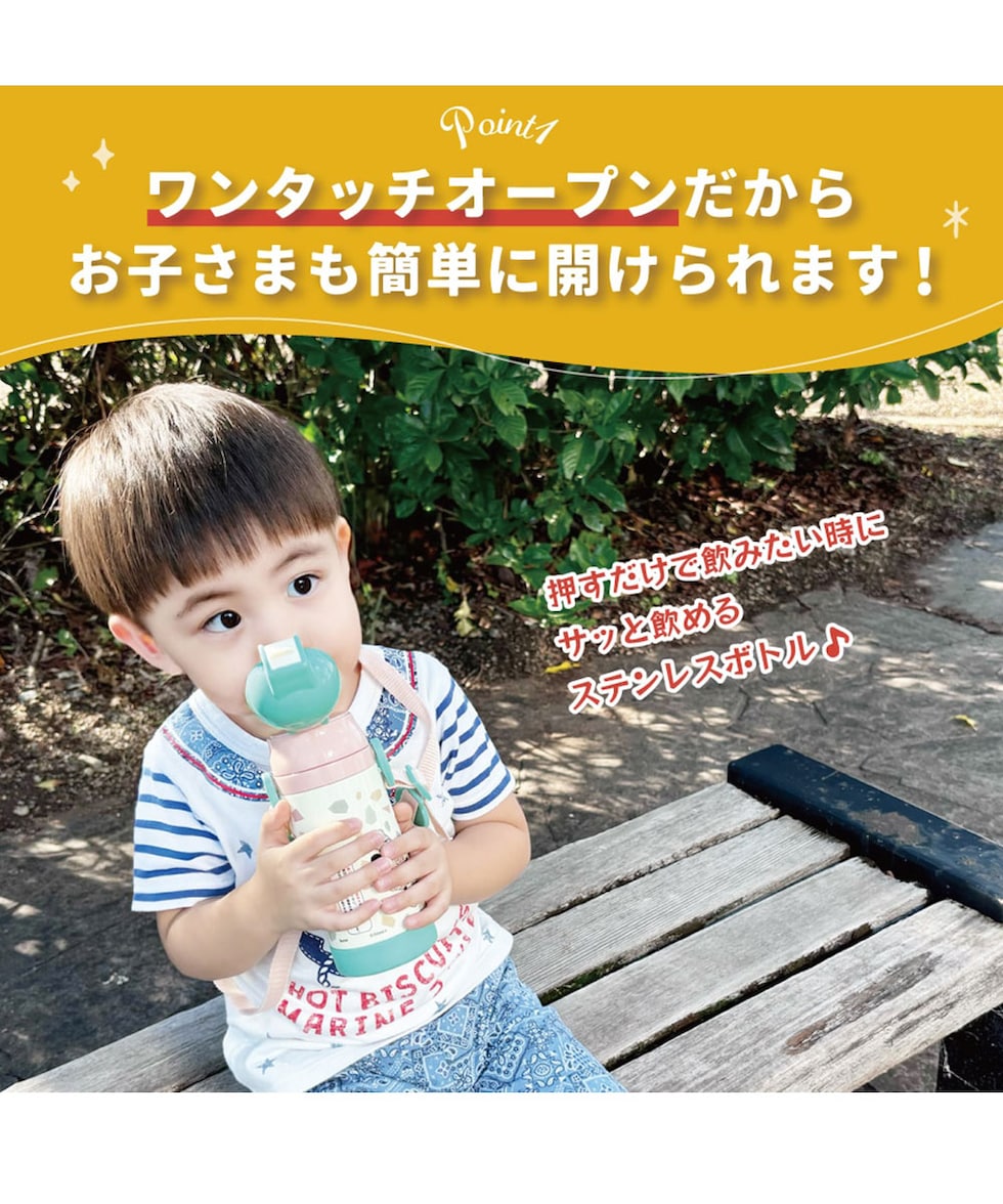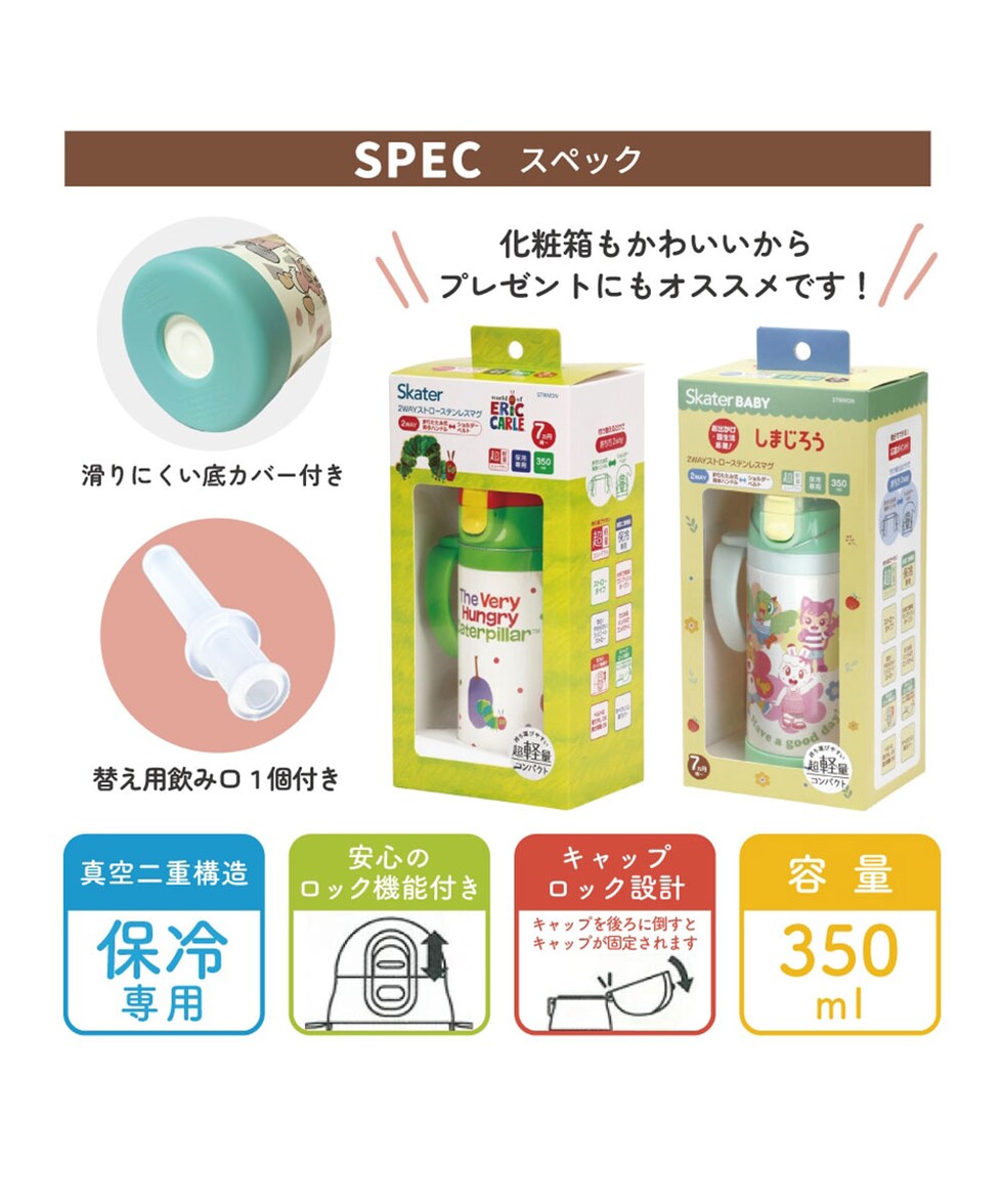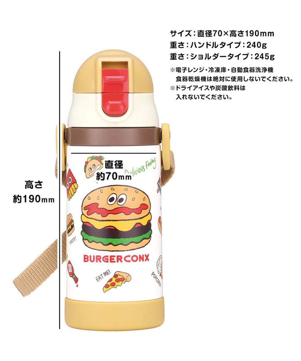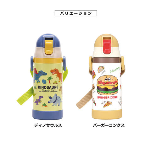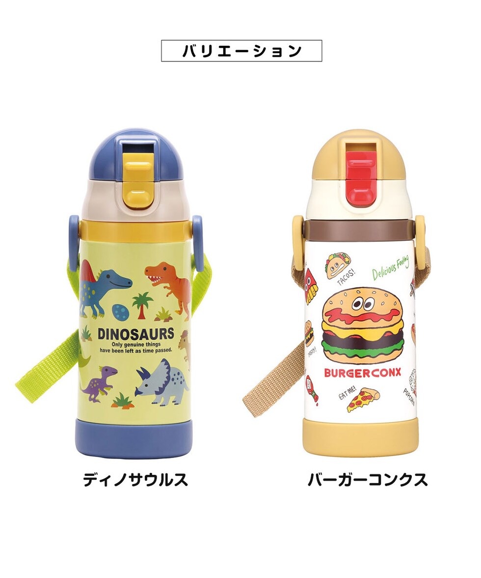 水筒 キッズ ストローマグ 350ml 保冷 ベビーマグ 男の子 女の子 ワンプッシュ 両手ハンドル かわいい ギフト 恐竜 バーガー STWM3N