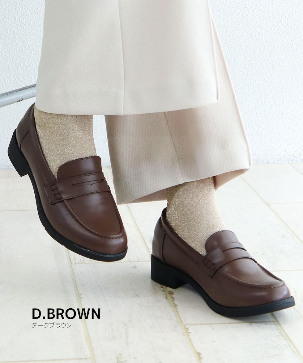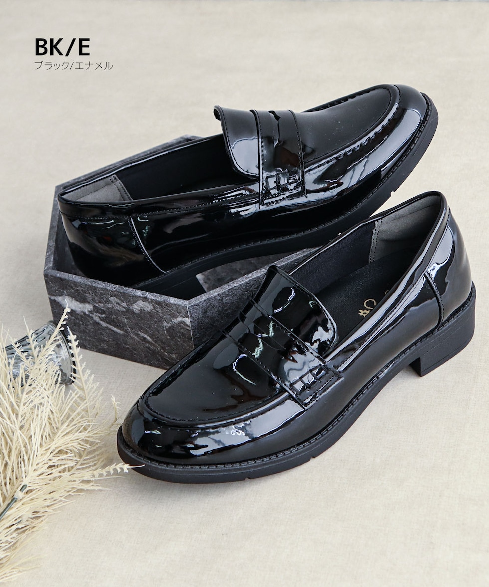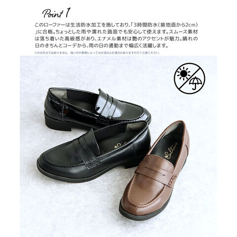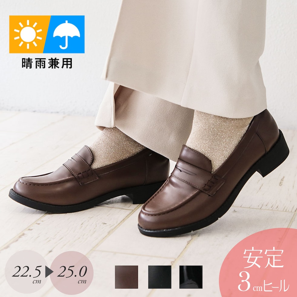 晴雨兼用 コインローファー レディース 歩きやすい 3cmヒール 痛くない シンプル きれいめ エナメル ブラック スムース ダークブラウン 防滑 1337