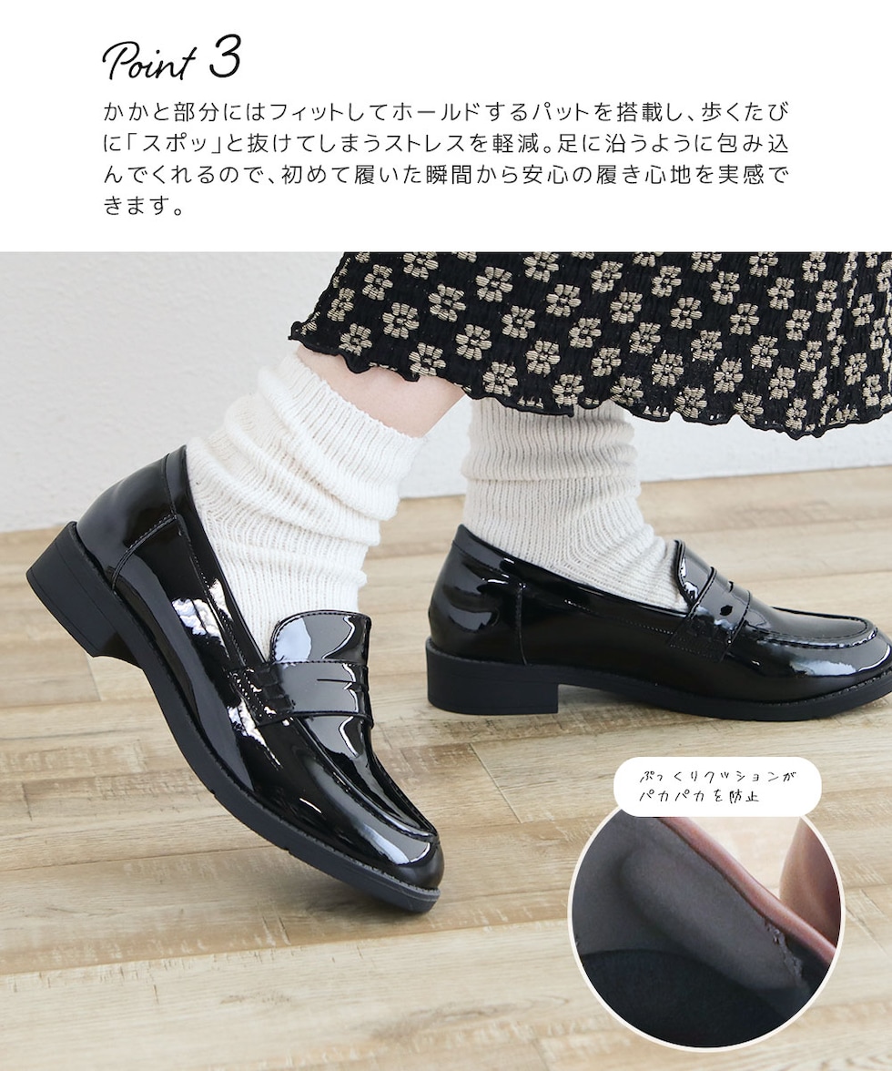 POINT3|かかと抜け防止パットで歩きやすさが格段にUP