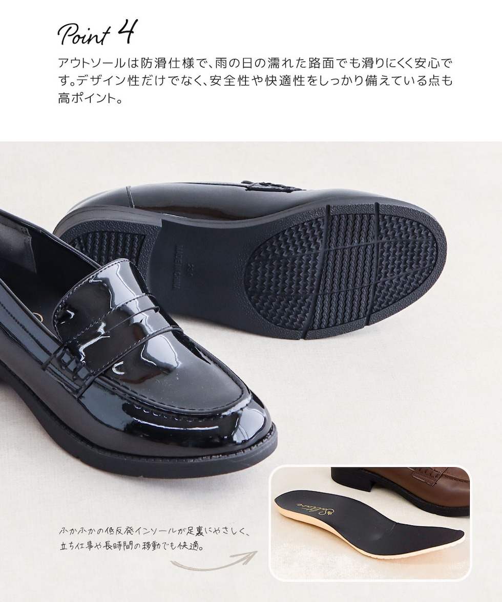 見た目はシンプルで上品。それでいて実用面は驚くほど優秀。大人の女性が求める「履きやすさ・歩きやすさ・美しさ」をしっかり詰め込んだ万能ローファーです。