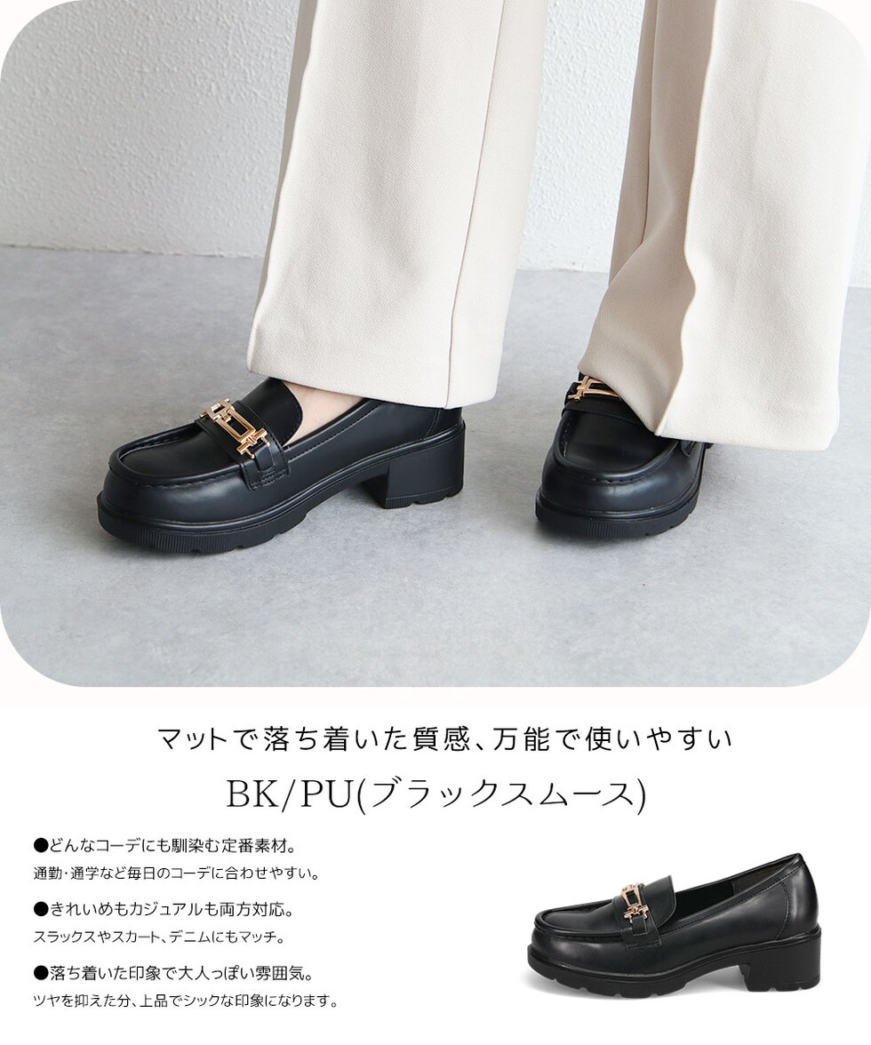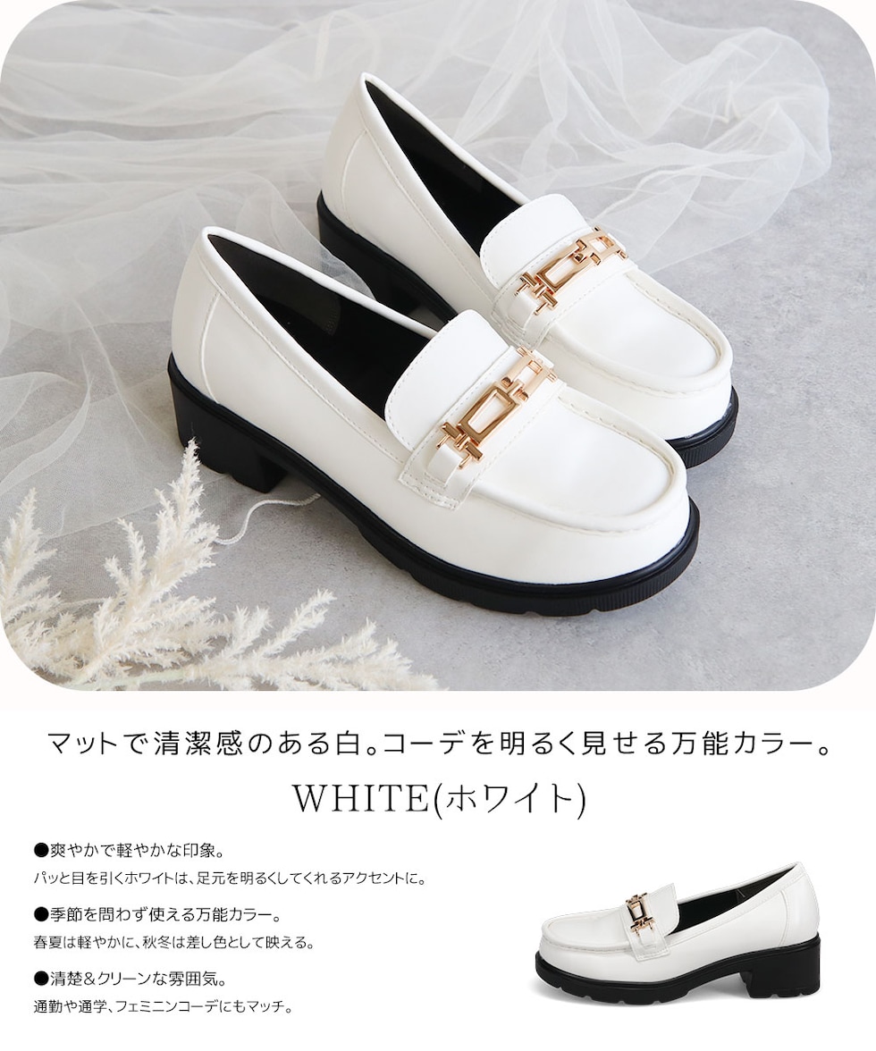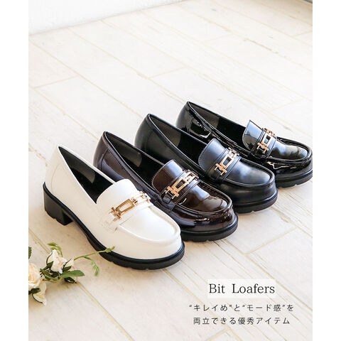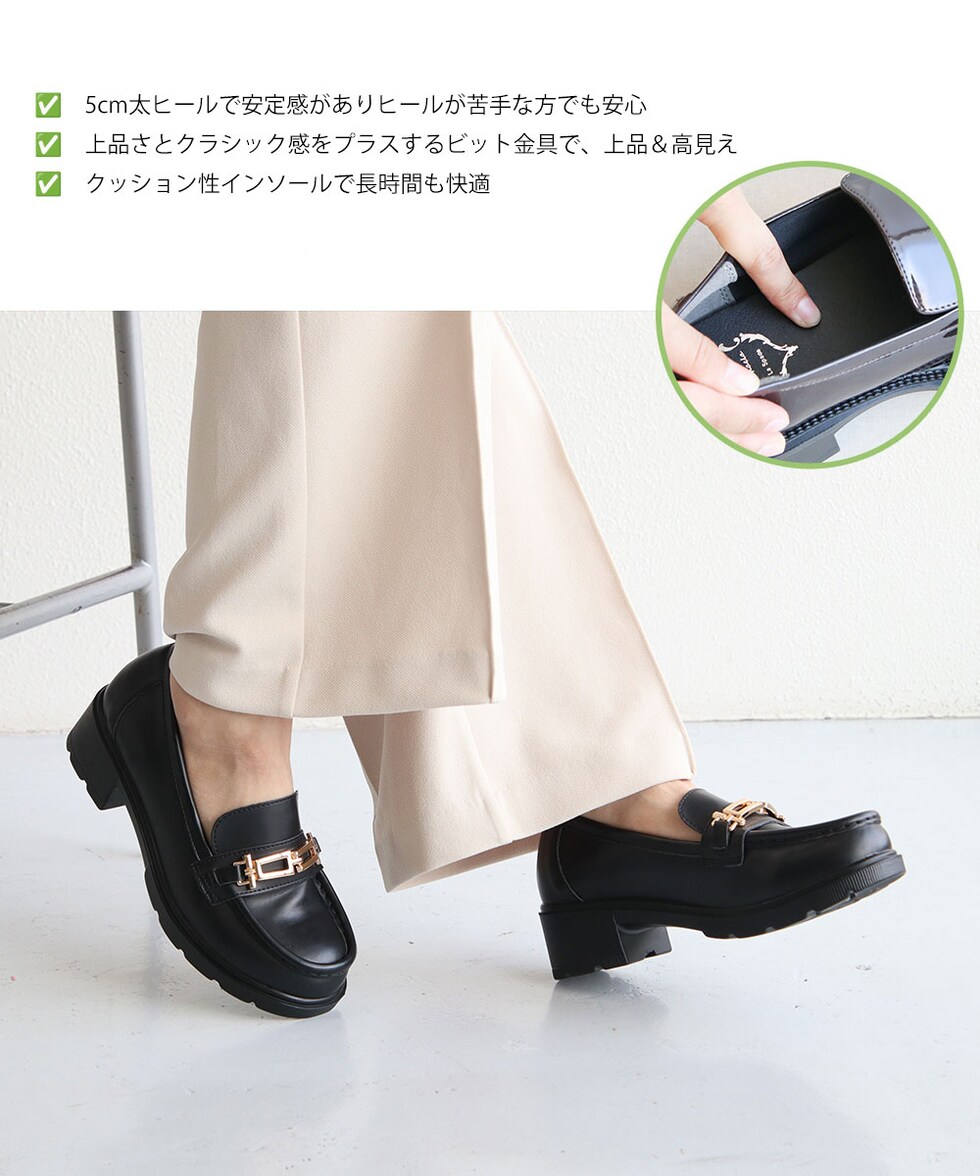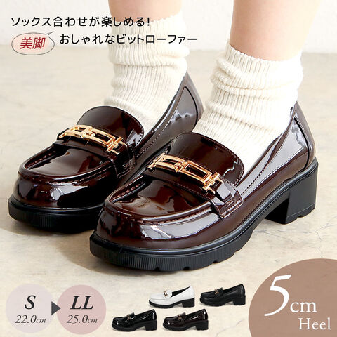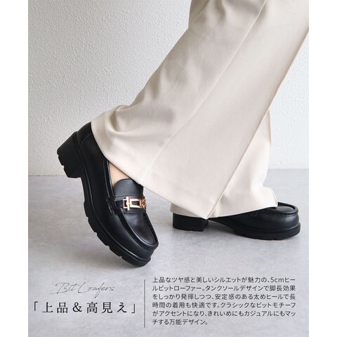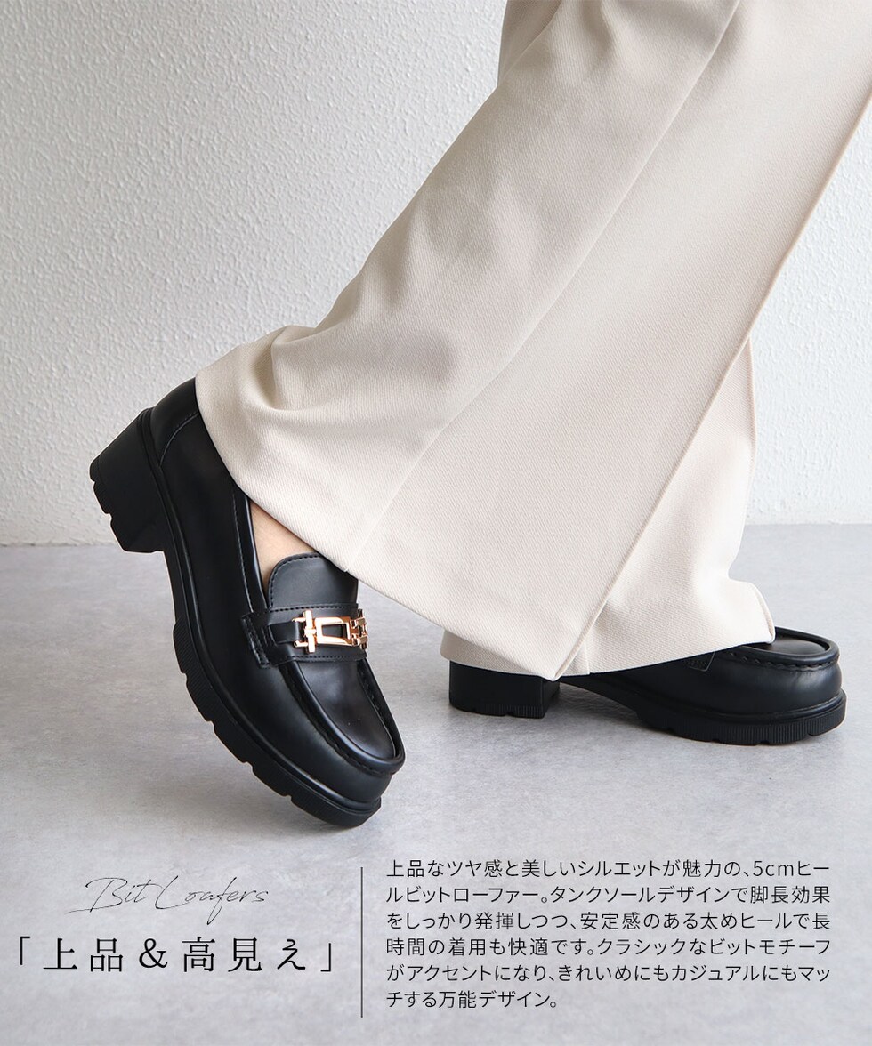 ビットローファー レディース 厚底 5cmヒール 美脚 歩きやすい 痛くない 通勤 通学 カジュアル 黒 白 ブラウン 1339