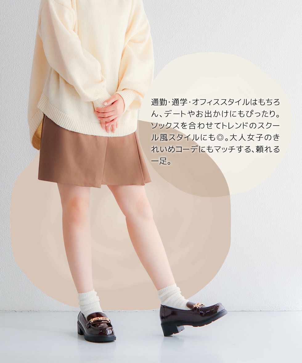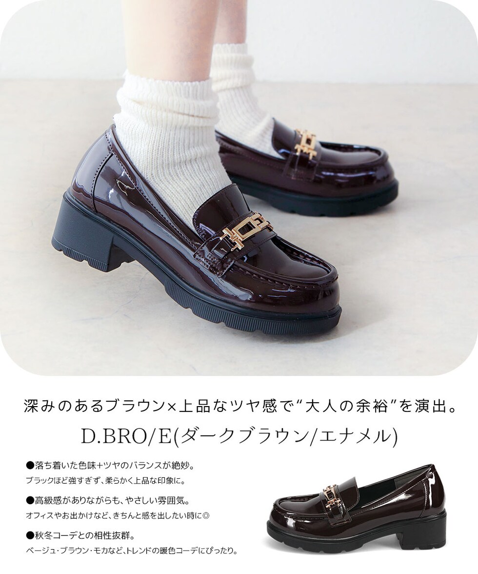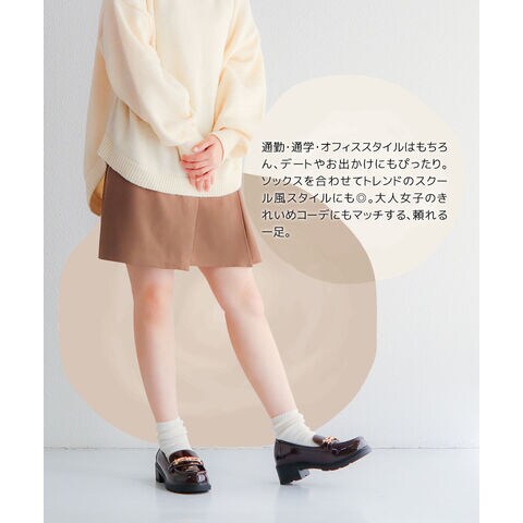 上品な光沢と程よいボリューム感で足元をきれいに見せる、5cmヒールローファー。