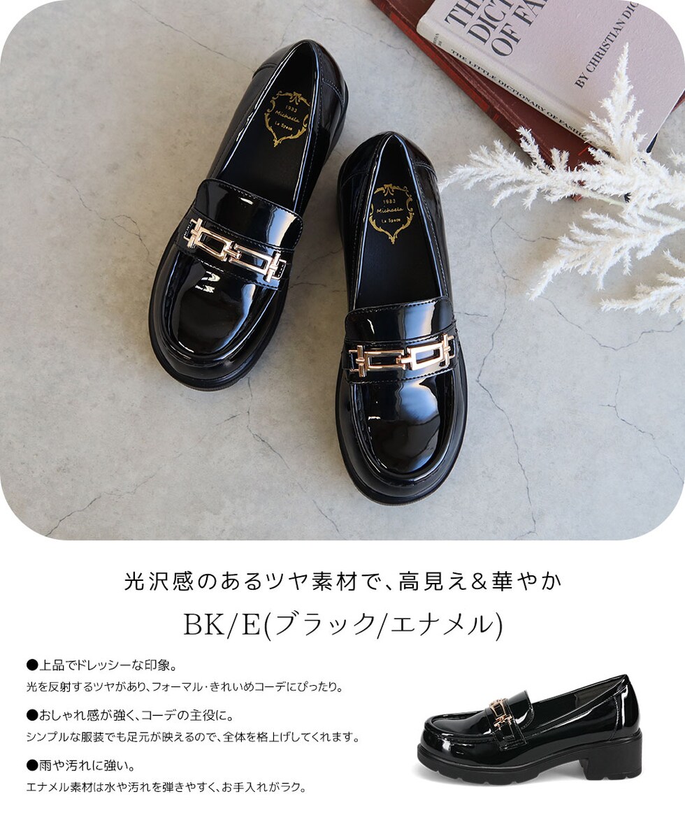 [カラー]:BK/E(ブラック/エナメル)|BK/PU(ブラックスムース)|D.BRO/E(ダークブラウン/エナメル)|WHITE(ホワイト)