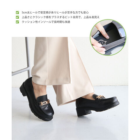 ビットローファー レディース 厚底 5cmヒール 美脚 歩きやすい 痛くない 通勤 通学 カジュアル 黒 白 ブラウン 1339のレビュー