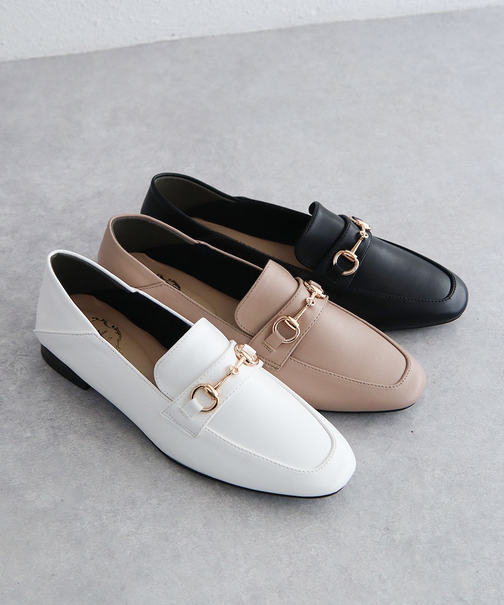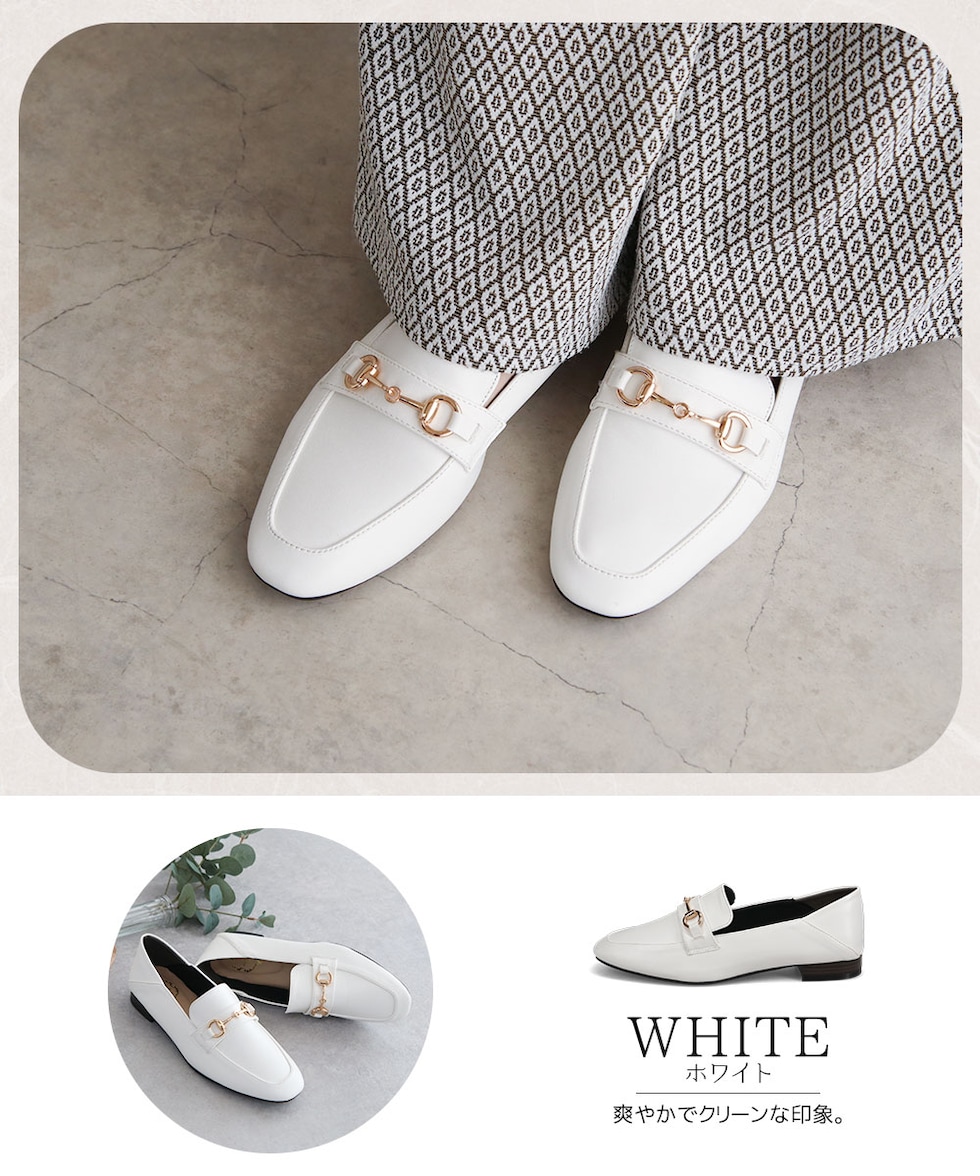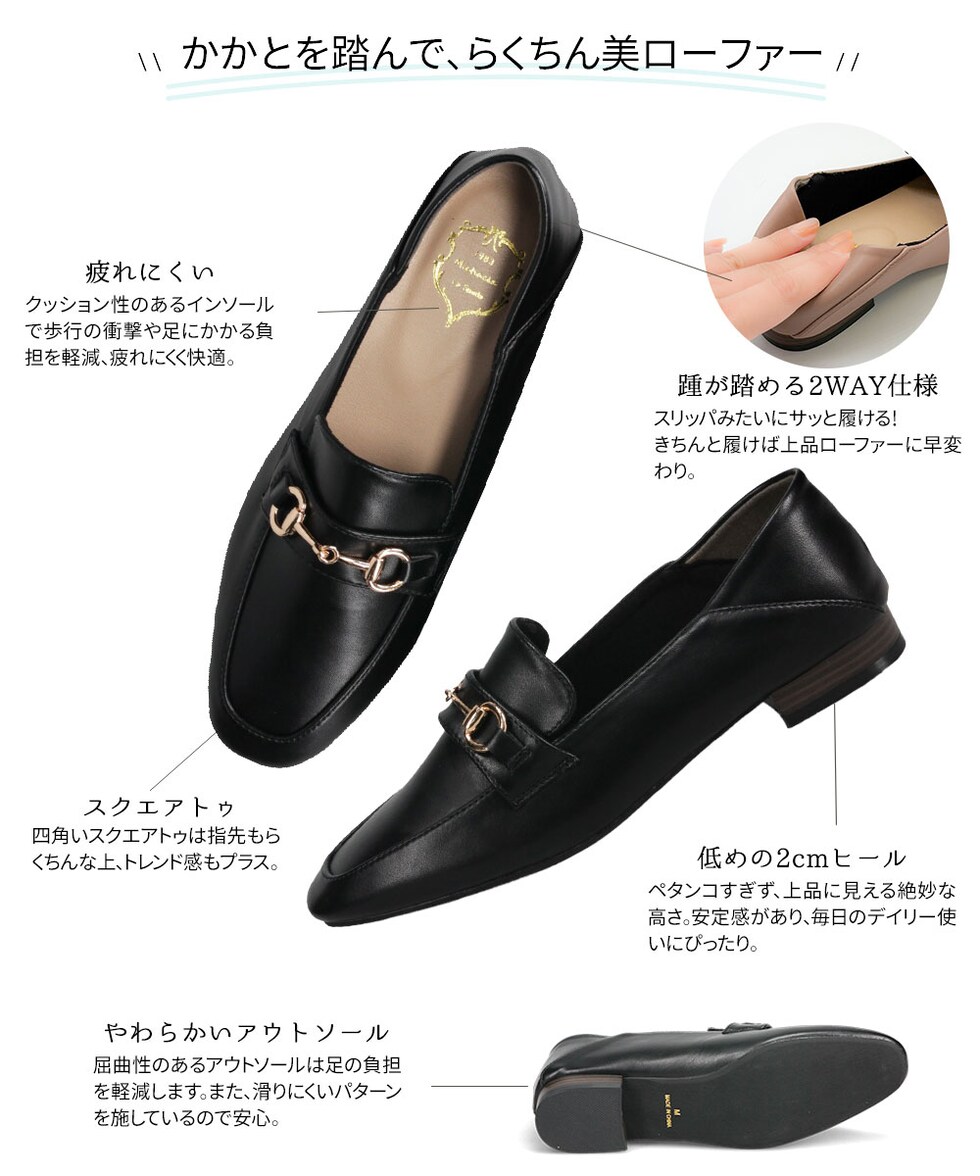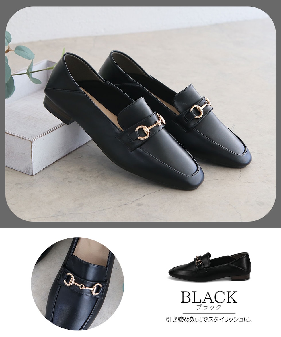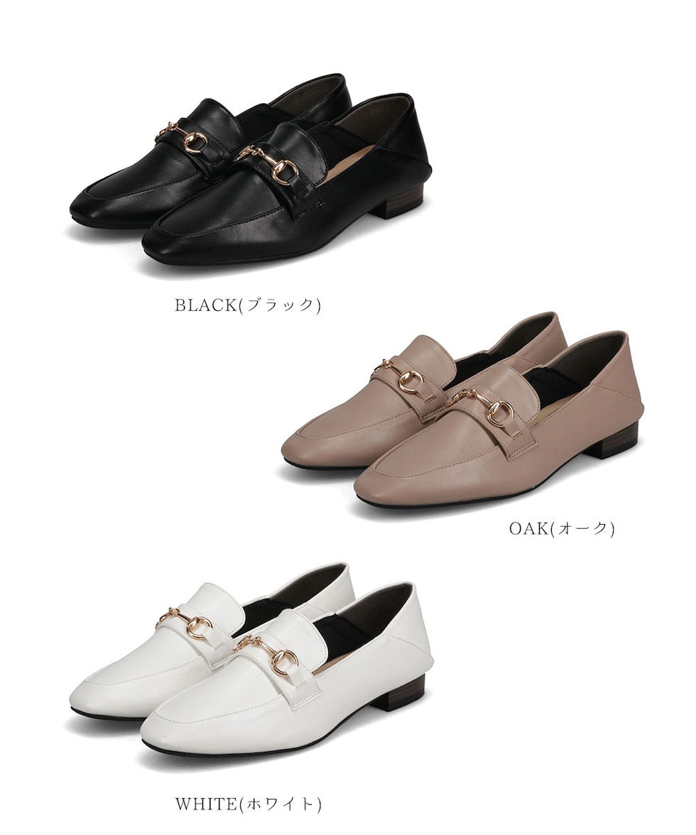 ビットローファー レディース かかとが踏める ローヒール 婦人靴 スクエアトゥ フラットシューズ パンプス 2cm ブラック ホワイト 209