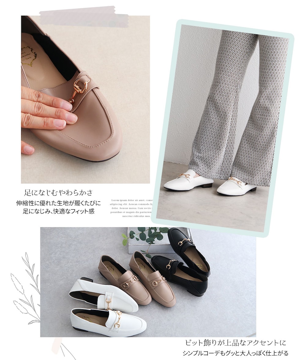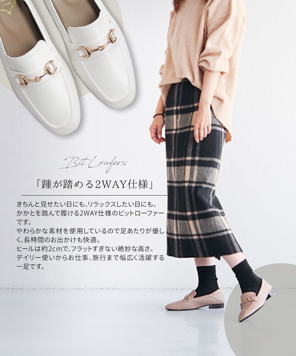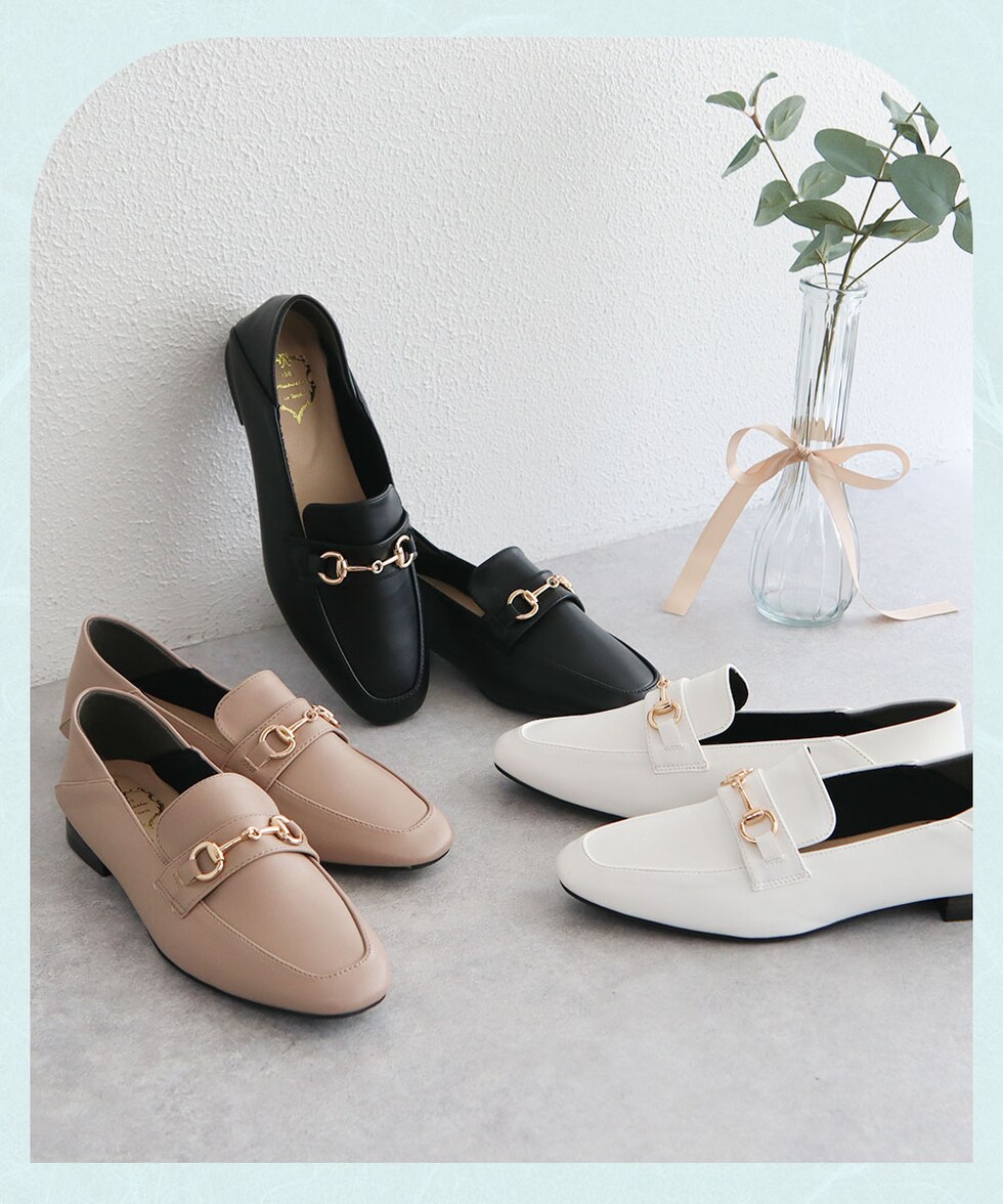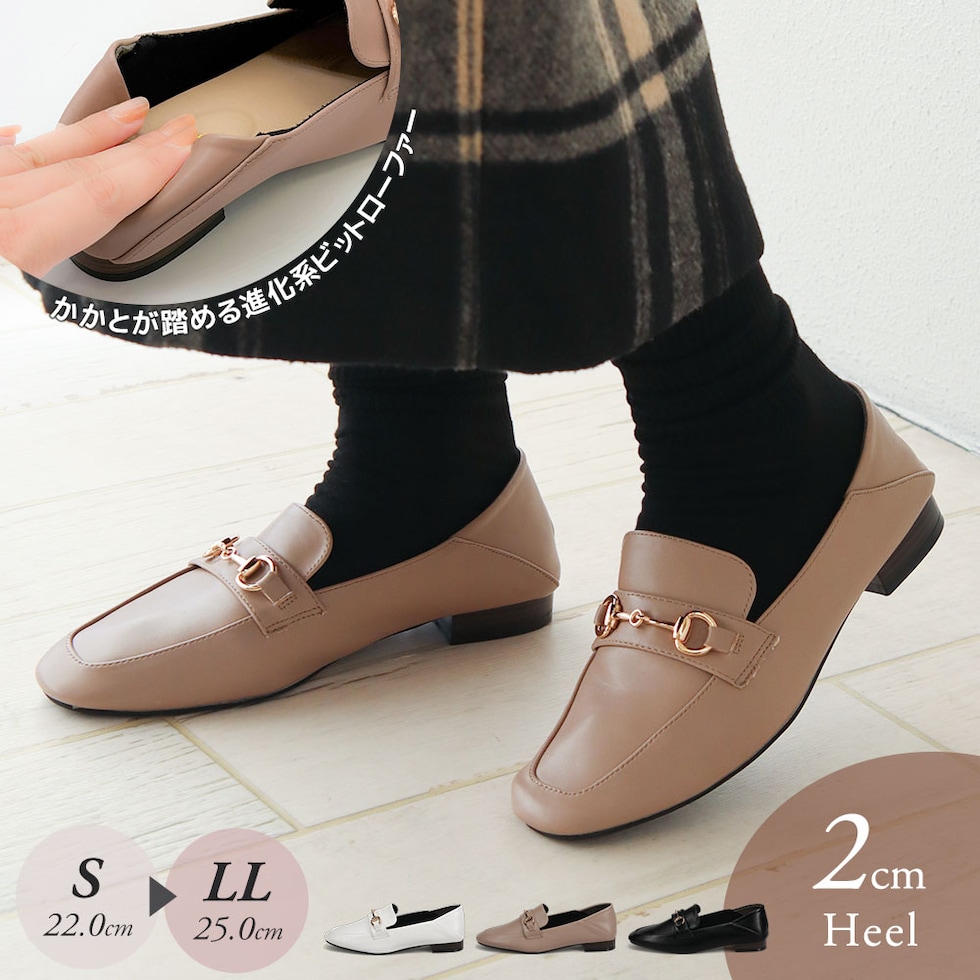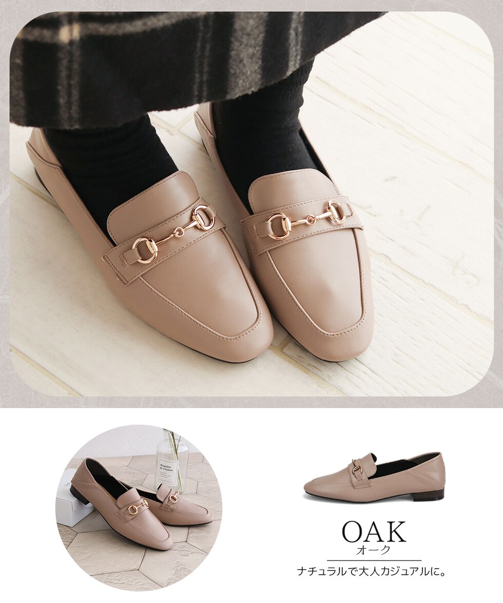 ビットローファー レディース かかとが踏める ローヒール 婦人靴 スクエアトゥ フラットシューズ パンプス 2cm ブラック ホワイト 209