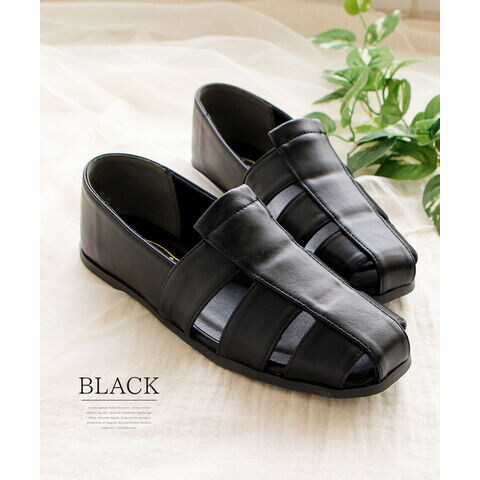 パンプス 痛くない レディース 黒 スクエアトゥ ローヒール かかとが踏める フラットシューズ 軽量 グルカサンダル 歩きやすい ぺたんこ 3091