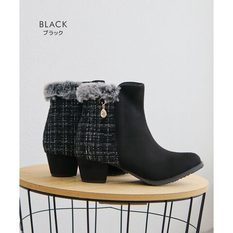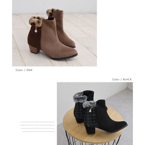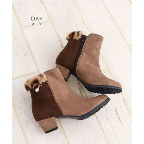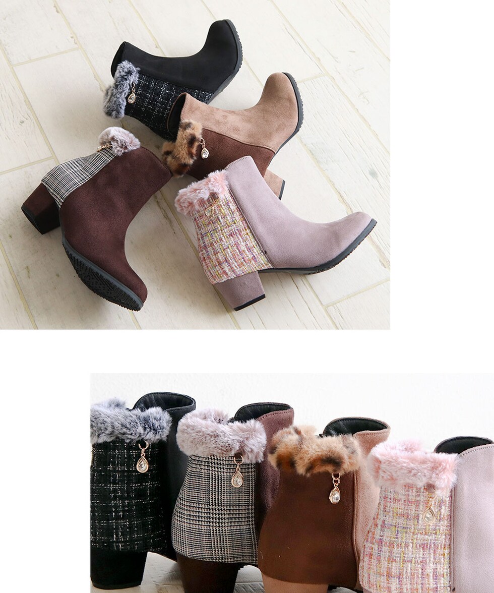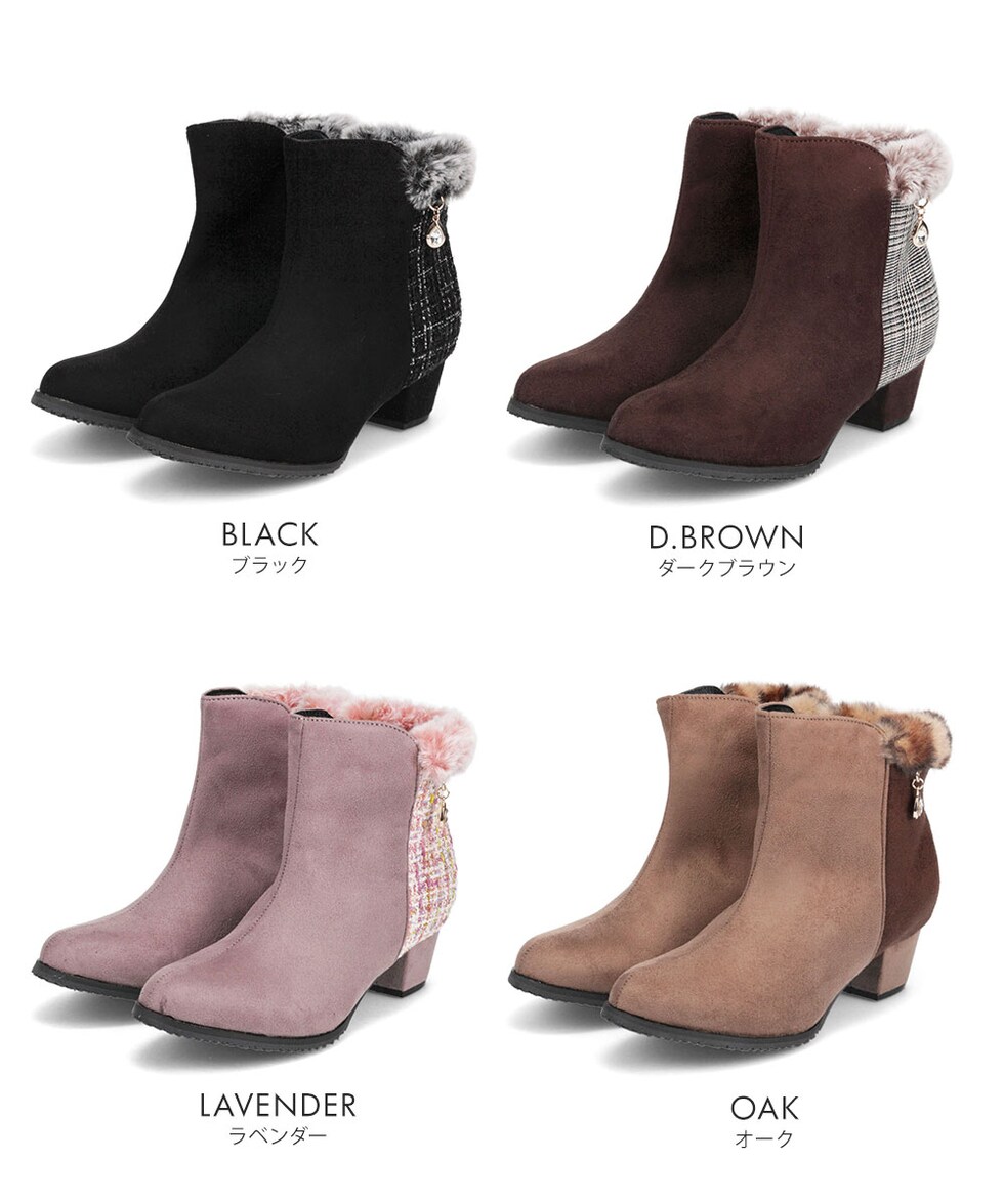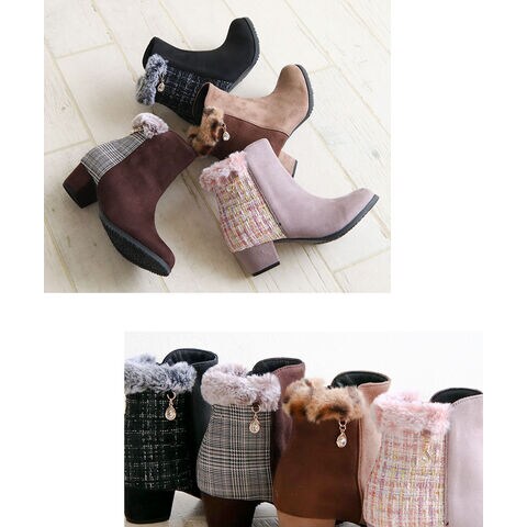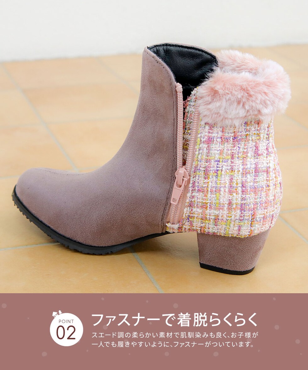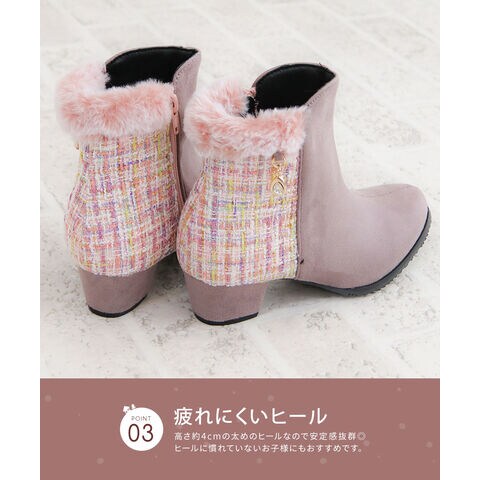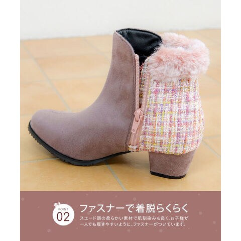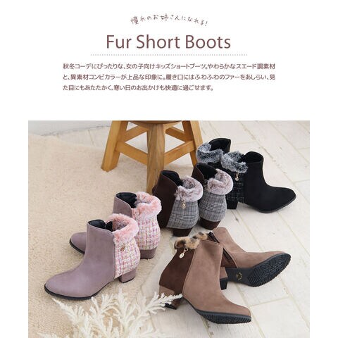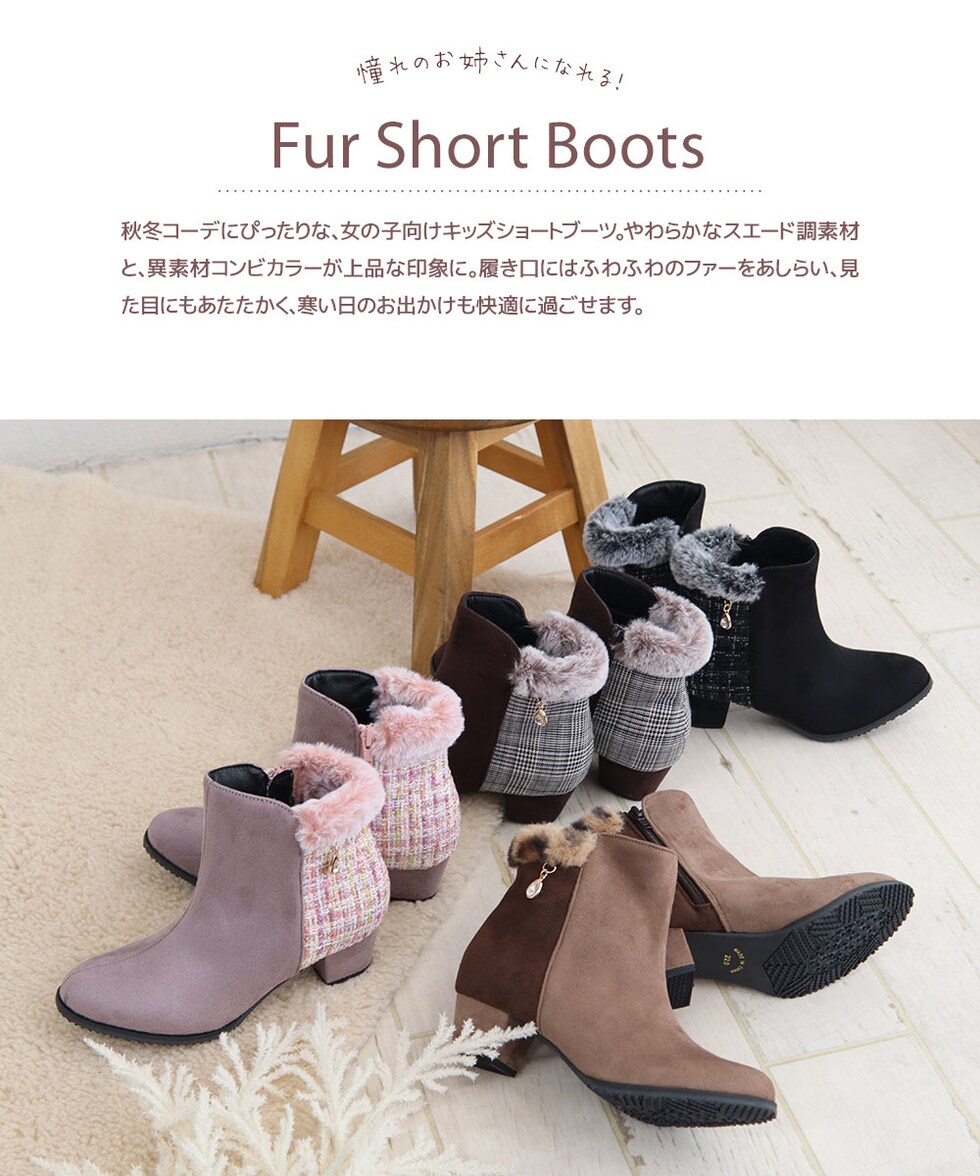 キッズ ショートブーツ ヒール 4cm スエード調 コンビカラー 女の子 インサイドファスナー ファー 防寒 シューズ 秋冬 5092